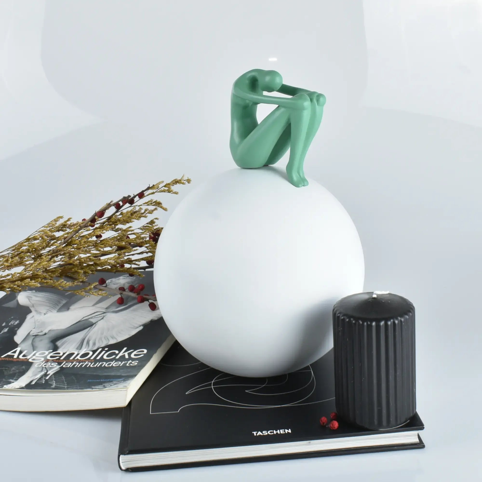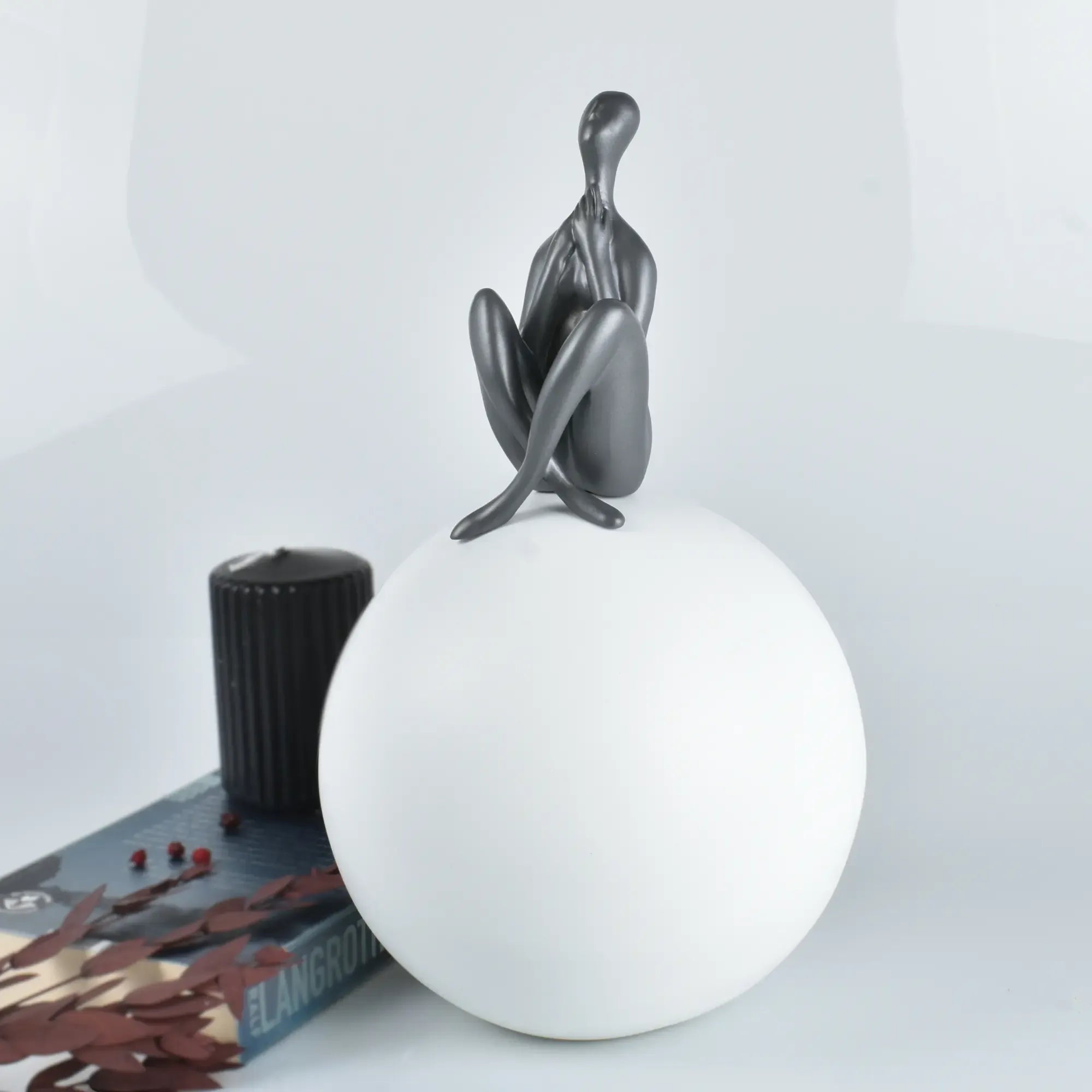 Nachdenkliche, kunstvolle Figur auf runder Basis – ein modernes, symbolträchtiges Highlight, das Ruhe, Reflexion und harmonische Balance verkörpert.