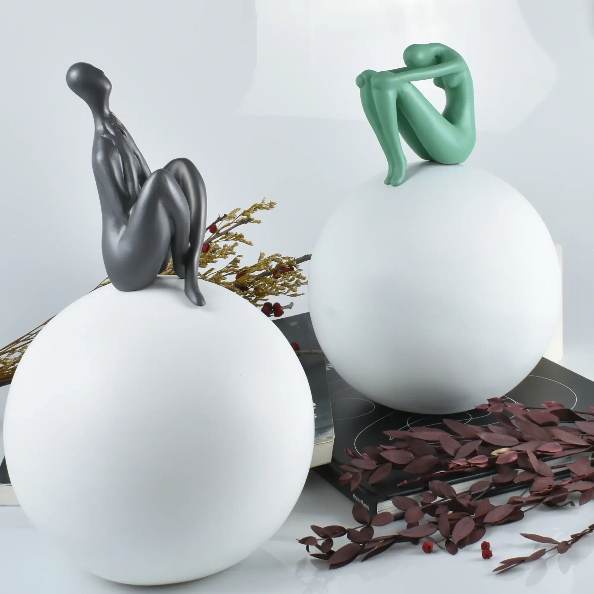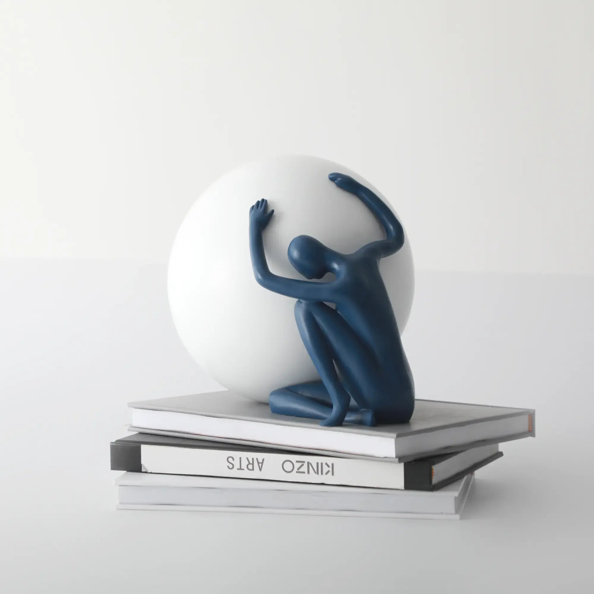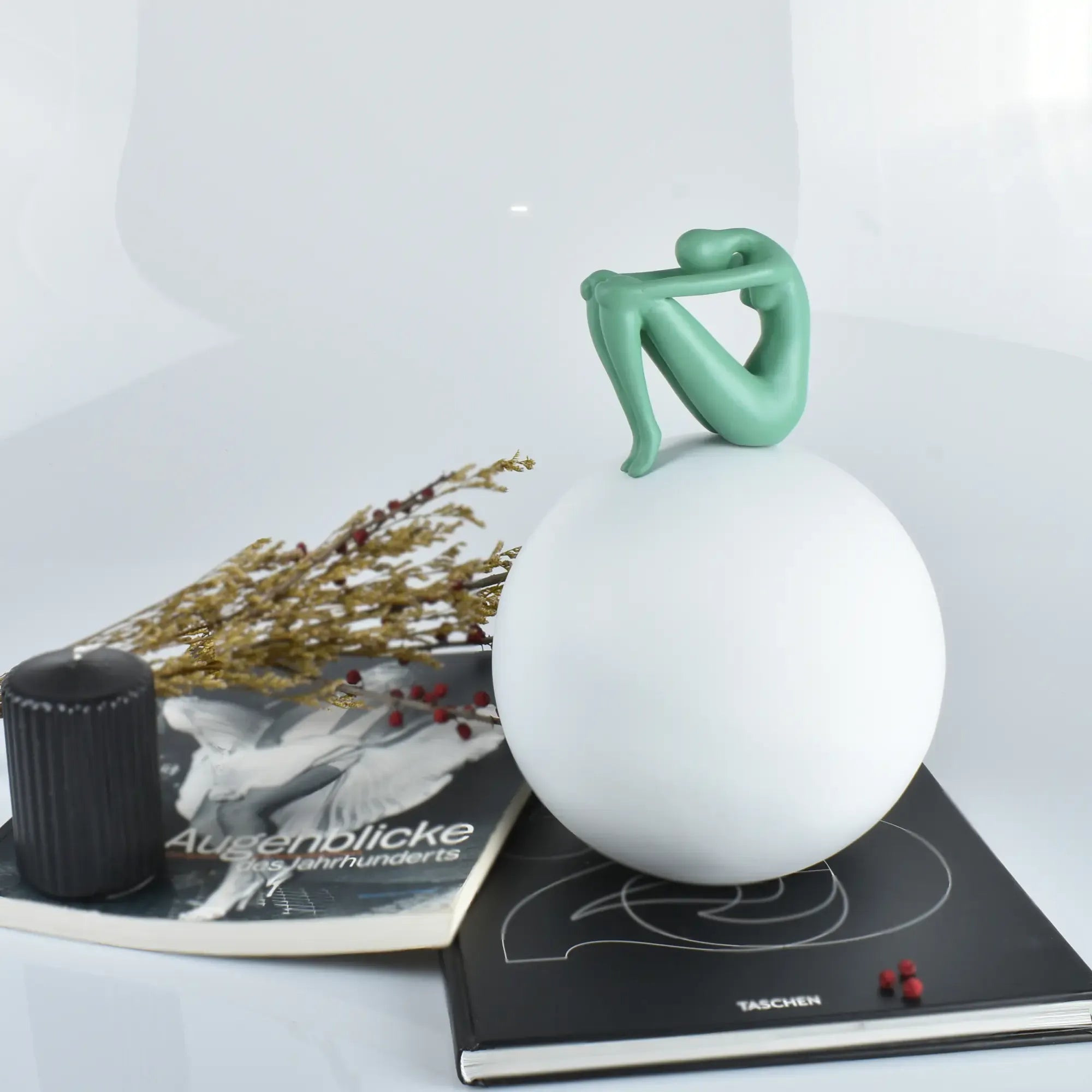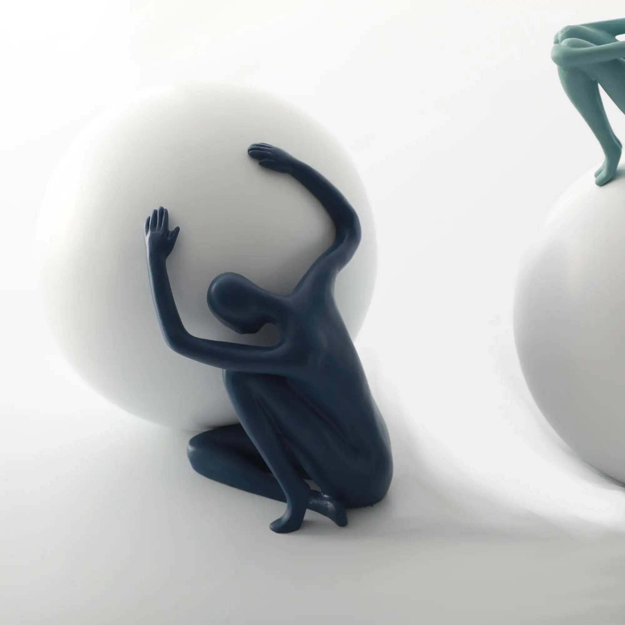 Das Réflexion Moderne ist ein kunstvolles Designobjekt aus hochwertigem Harz – eine stilisierte Figurenskulptur in Grau, Blau oder Seeblau, die auf einer schlichten weißen Kugel ruht. Die moderne Skulptur verkörpert Ruhe, Reflexion und Balance und wird durch ihre klare Formensprache und matte Oberfläche zum ästhetischen Highlight in jeder Einrichtung. Die nachdenkliche Haltung der Figur strahlt Tiefe aus und schafft eine beruhigende, inspirierende Atmosphäre. Dank der neutralen, harmonischen Farbgebung lässt sie sich mühelos mit allen Dekorationsideen kombinieren – ob modern, minimalistisch oder klassisch. Ob als Einzelstück oder im Set arrangiert: Die Skulptur ist vielseitig einsetzbar – ideal als Dekoration für Zuhause, aber auch perfekt geeignet für Arztpraxen, Büros, Empfangsbereiche oder Bücherregale. Auf Sideboards, Couch- oder Beistelltischen zieht sie als kunstvoller Akzent garantiert die Blicke auf sich und bringt eine ruhige, stilvolle Note in den Raum.