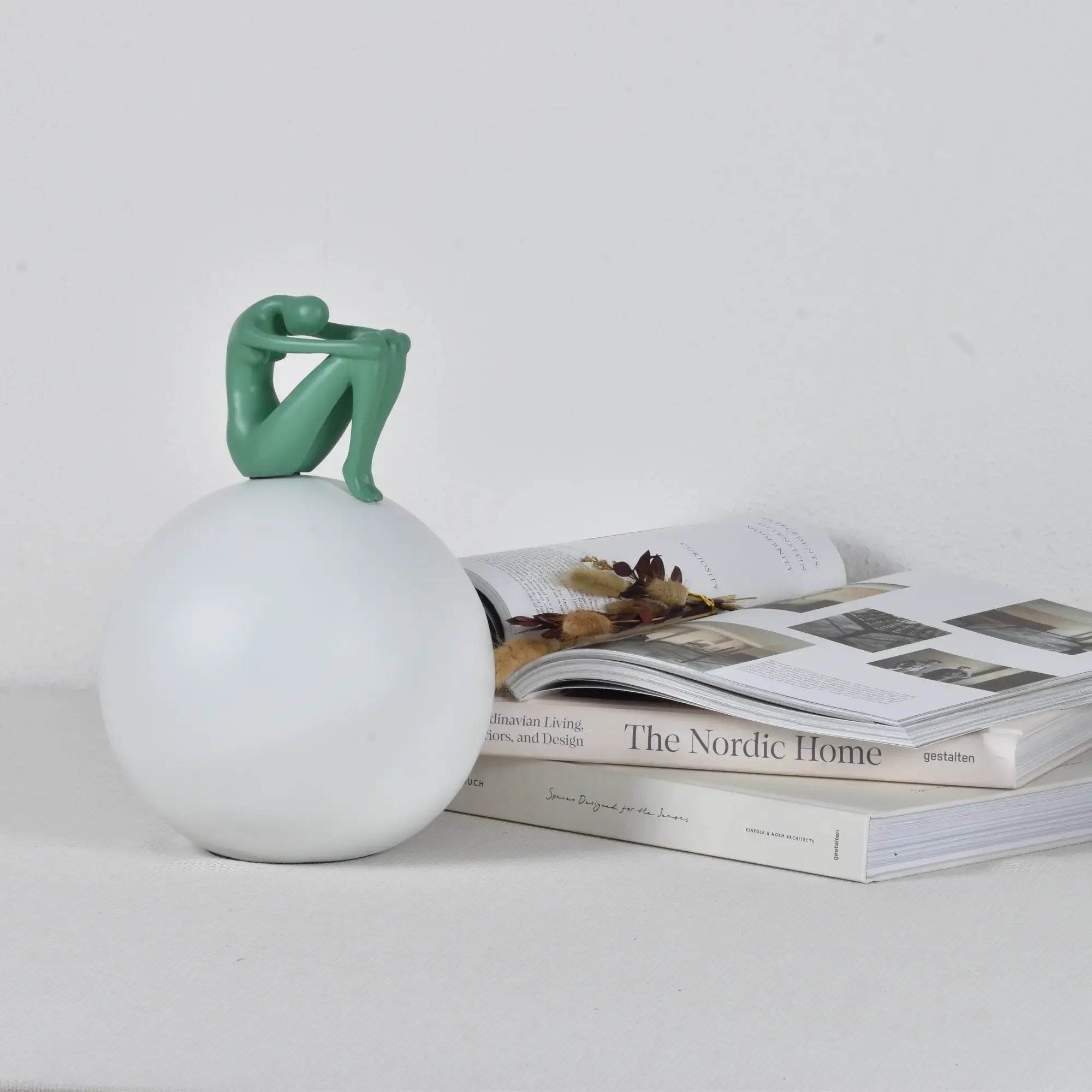 Harz Dekoobjekt modern, nachdenkliche Figur Skulptur, kunstvolle Tischdekoration, minimalistische Wohnaccessoires, Designobjekt Highlights, Dekoration in Grau oder Blau, stilvolle Raumakzente.
