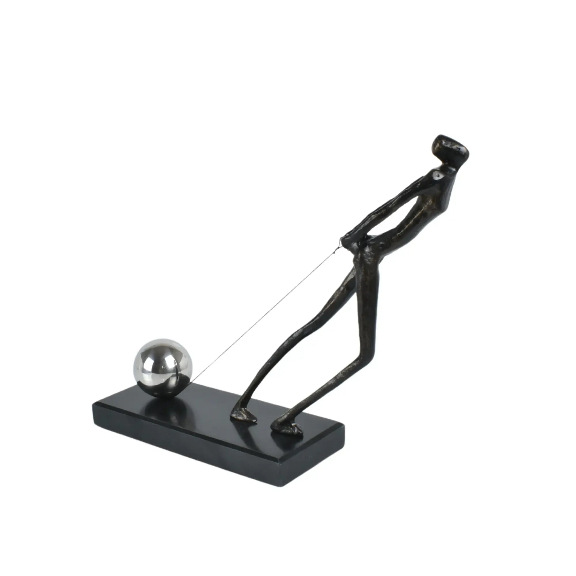 Deko-ObjektForce et Persévérance symbolisiert Kraft, Ausdauer und Zielstrebigkeit – eingefangen in einer modernen, minimalistischen Skulptur aus Metall. Eine abstrahierte Stahlfigur zieht eine glänzende Edelstahlkugel, verbunden durch ein filigranes Seil, auf einem edlen Marmorsockel. Das Spiel zwischen glänzender Kugel und mattem Metall erzeugt visuelle Spannung und Balance – ein starkes Symbol für innere Stärke und Beharrlichkeit. Als Designerskulptur, Dekoskulptur oder Metallskulptur ist sie mehr als ein Dekoobjekt – sie ist ein Ausdruck von Haltung. Perfekt geeignet für Wohnzimmer, Homeoffice, Bibliotheken, Bücherregale oder Büros – ebenso wie für Arztpraxen, Anwaltskanzleien, Hotels oder Empfangsbereiche. Die Skulptur inspiriert in kreativen Arbeitsumgebungen und verleiht jedem Raum Bedeutung und Stil. Ideal auch als symbolisches Geschenk für Kollegen, Mitarbeiter oder Geschäftspartner – ein kraftvoller Akzent für alle, die abstrakte Dekorationsideen und hochwertige Metallkunst schätzen.