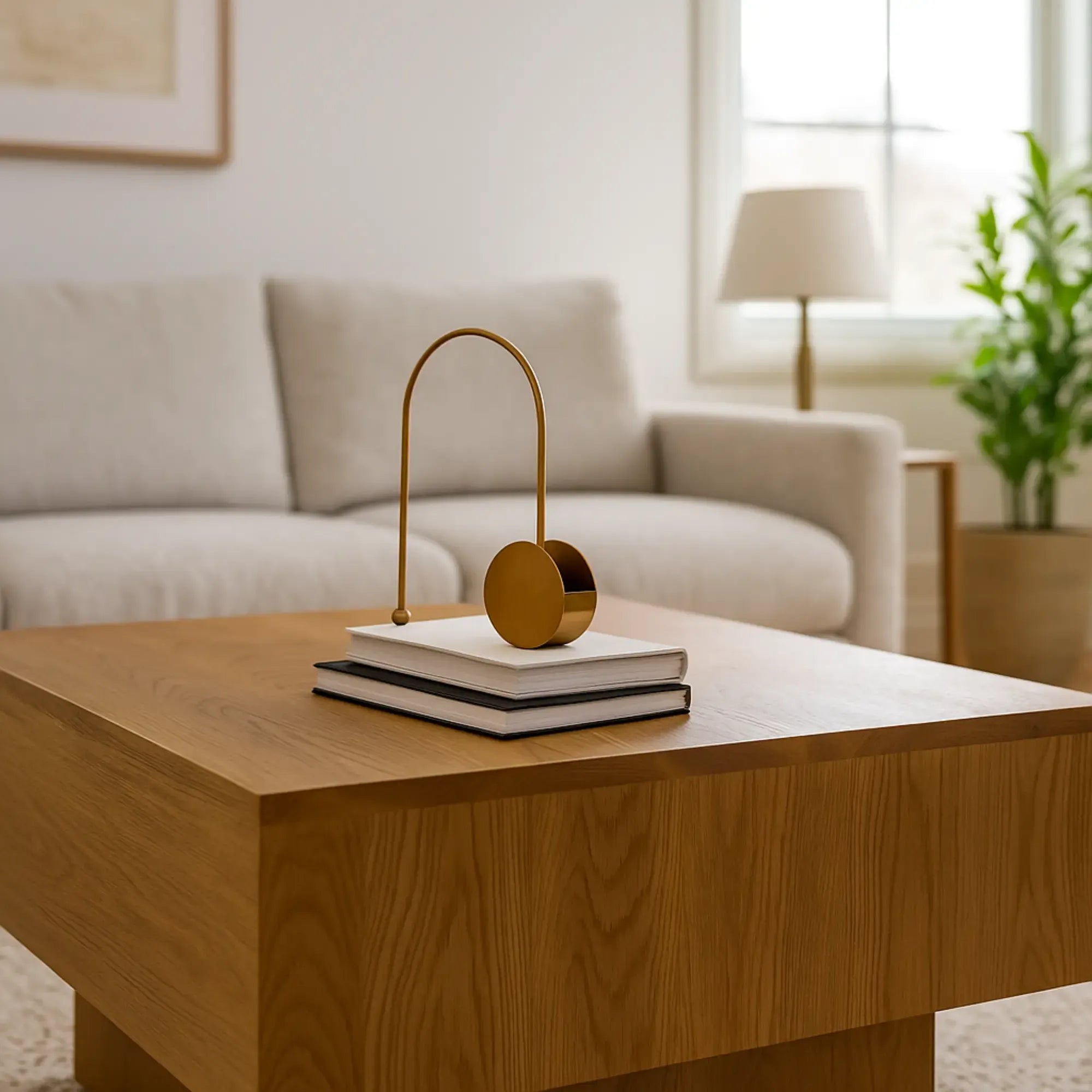 Perfekt auf Kommoden, Regalen, Sideboards, Couchtischen; setzt ruhige, goldene Akzente.