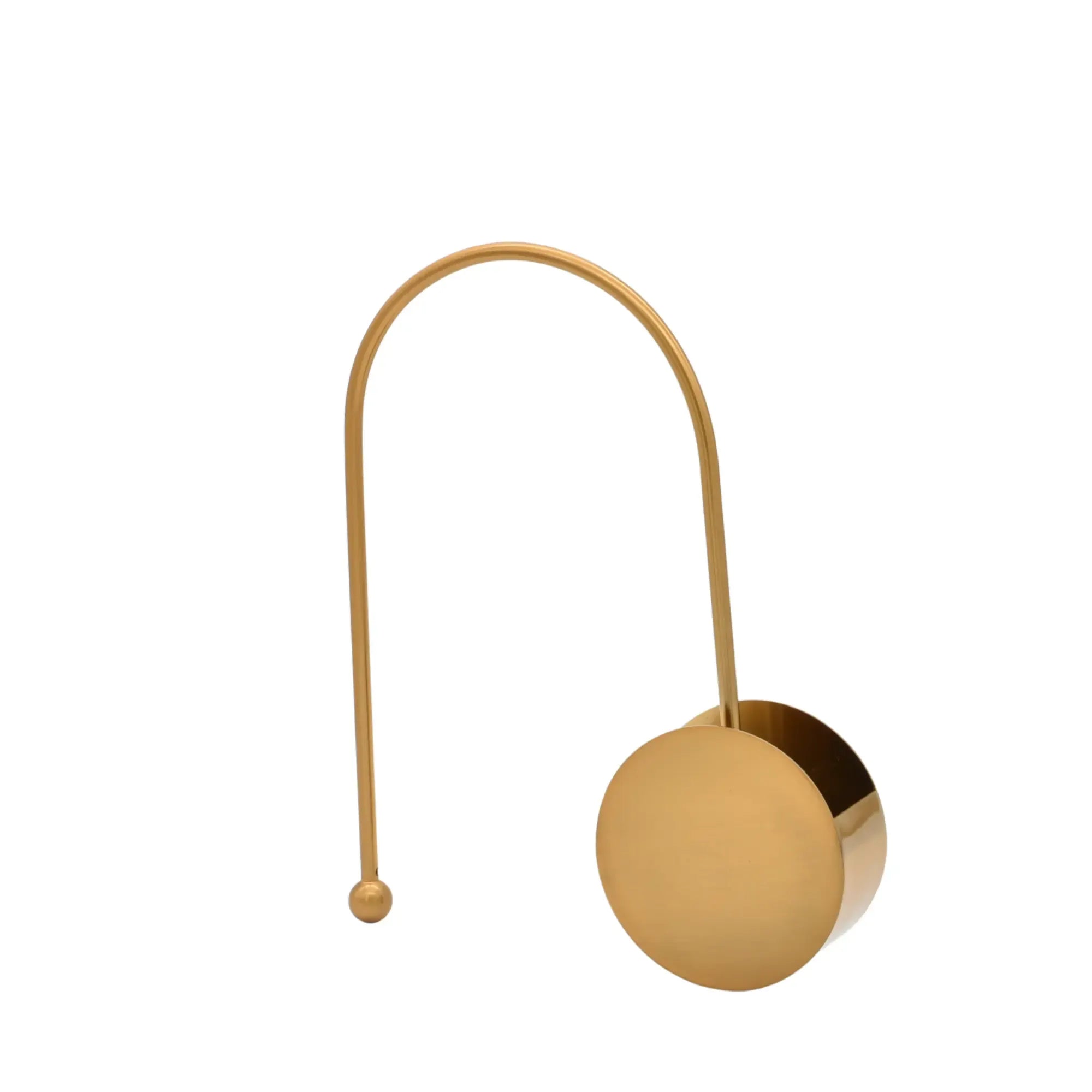 Seine Form wirkt skulptural und minimalistisch, mit einer harmonischen Kombination aus Rundung und Vertikale – perfekt als dekoratives Accessoire oder Akzentobjekt in modernen, industriellen oder luxuriösen Interieurs.
