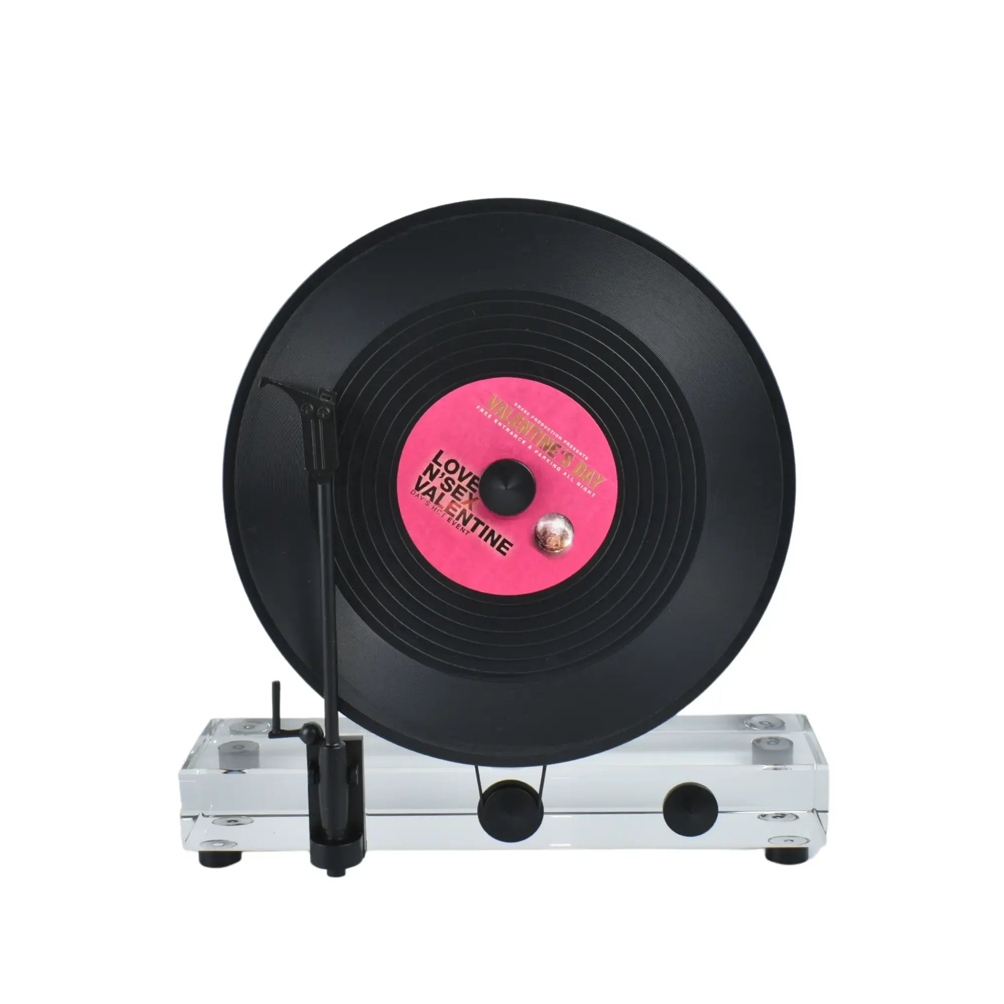 Dekoobjekt - für Tische und Regale - Dekoratives Plattenspieler Retro Grammophon Kunststoff & Kristall, Transparent & Schwarz, gross und robust, im Stil: Abstrakt, Modern, Minimalistisch