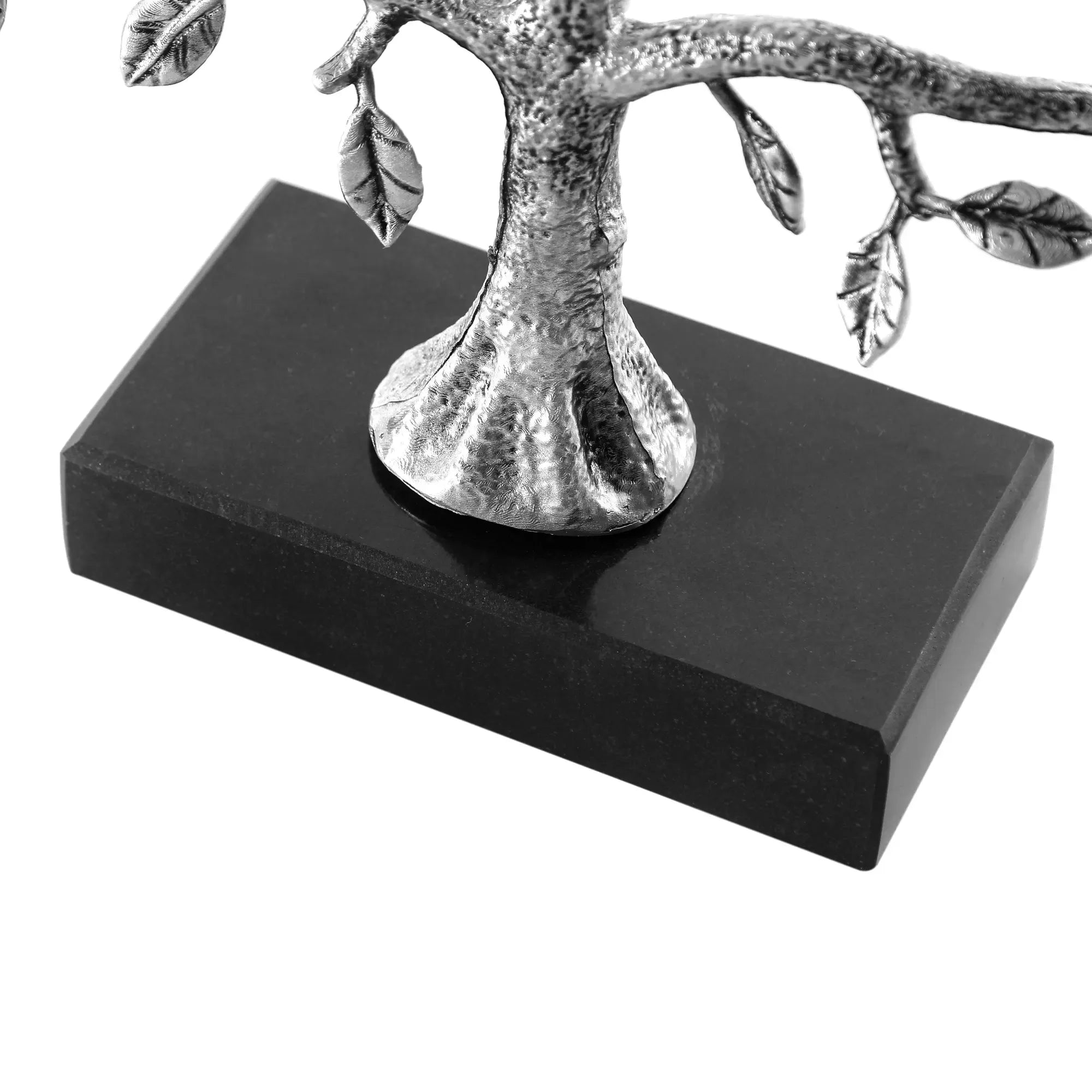 Aus hochwertiger Zinnlegierung in Antiksilber, handgefertigt und handbemalt. Der stabile Sockel aus matt-schwarzem Marmor sorgt für Gewicht und edle Standfestigkeit.