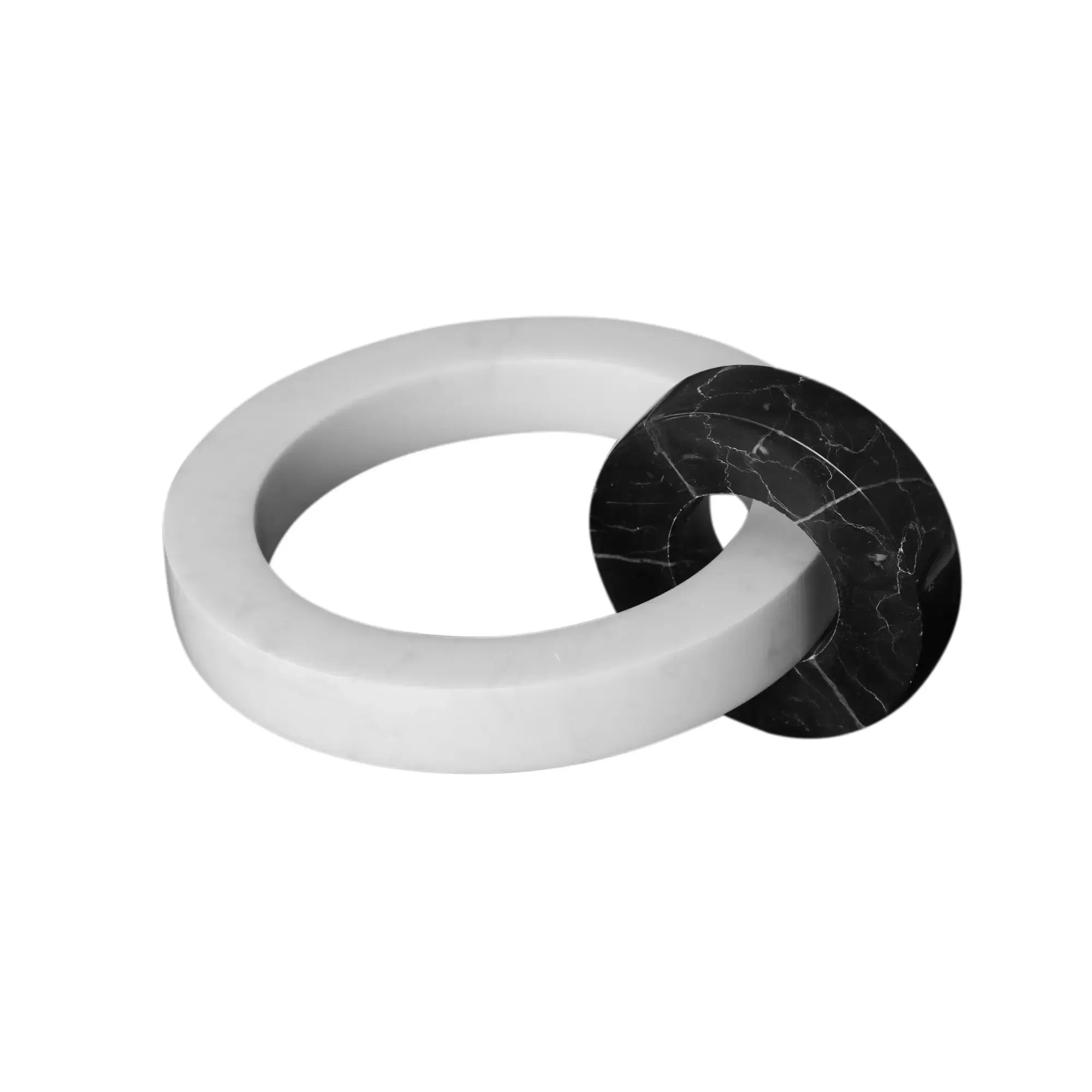 Dekoringe - rund aus Marmor - Modernes Design-Objekt 2 Ringe Deko Unity Rings Marmor, Weiss & Schwarz, und robust, vom stil Modern & Minimalistisch