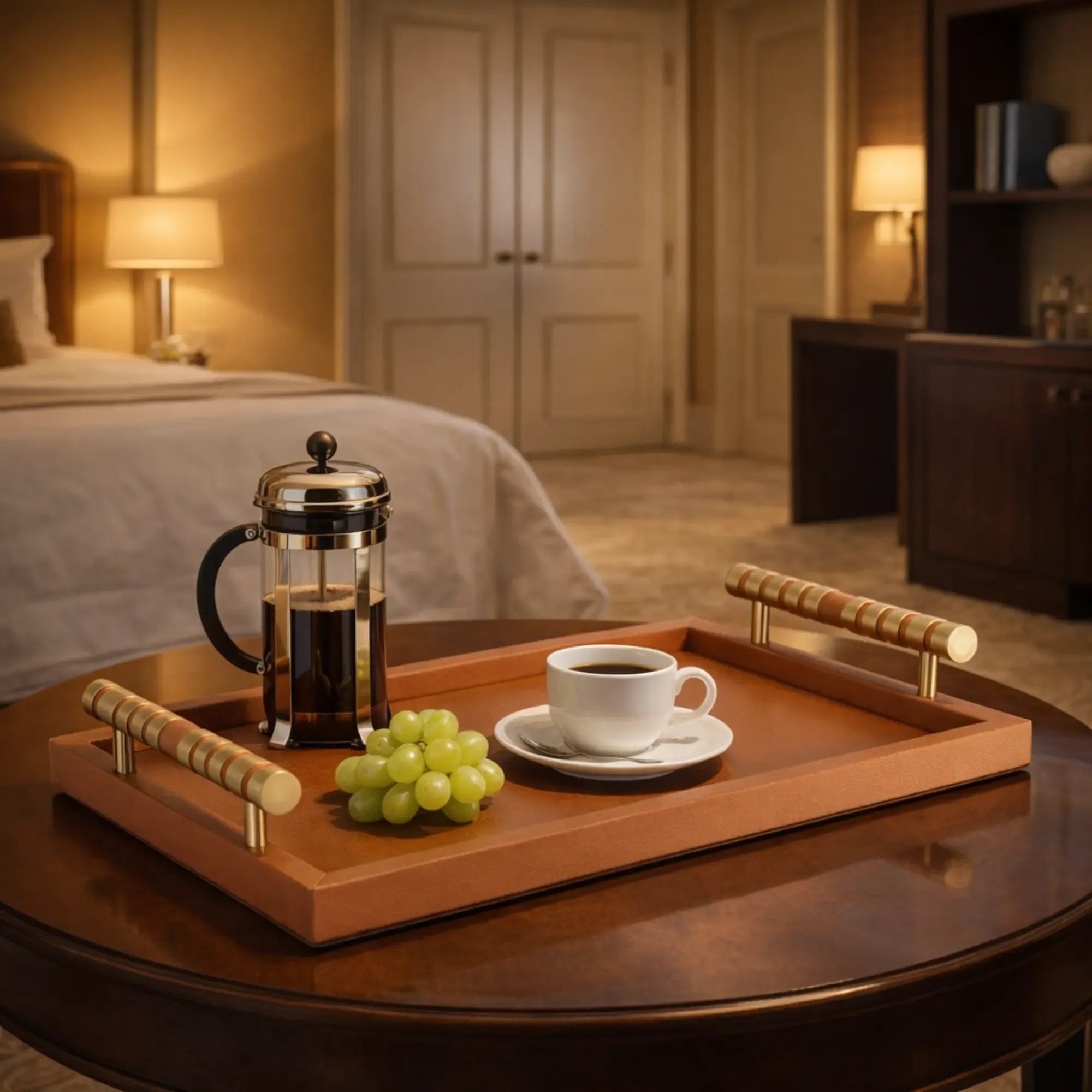 Tablett - ist mehr als ein Servierhelfer – es dient als edle Ablage, Dekobasis oder Highlight auf Tisch, Konsole oder im Hotelzimmer. Ein geschmackvolles Geschenk für Eltern, Einweihung, Hochzeit oder für Liebhaber stilvoller Ordnung.