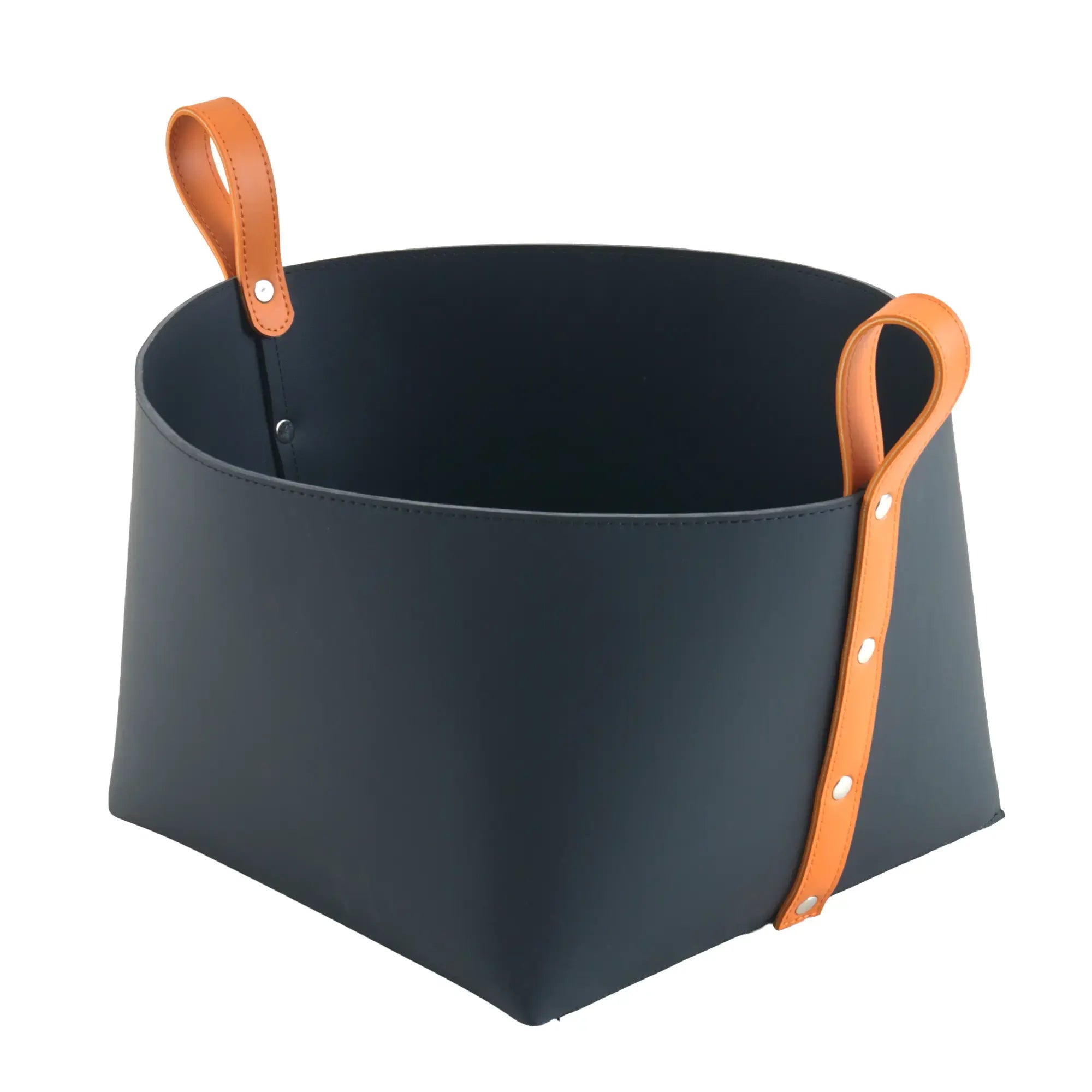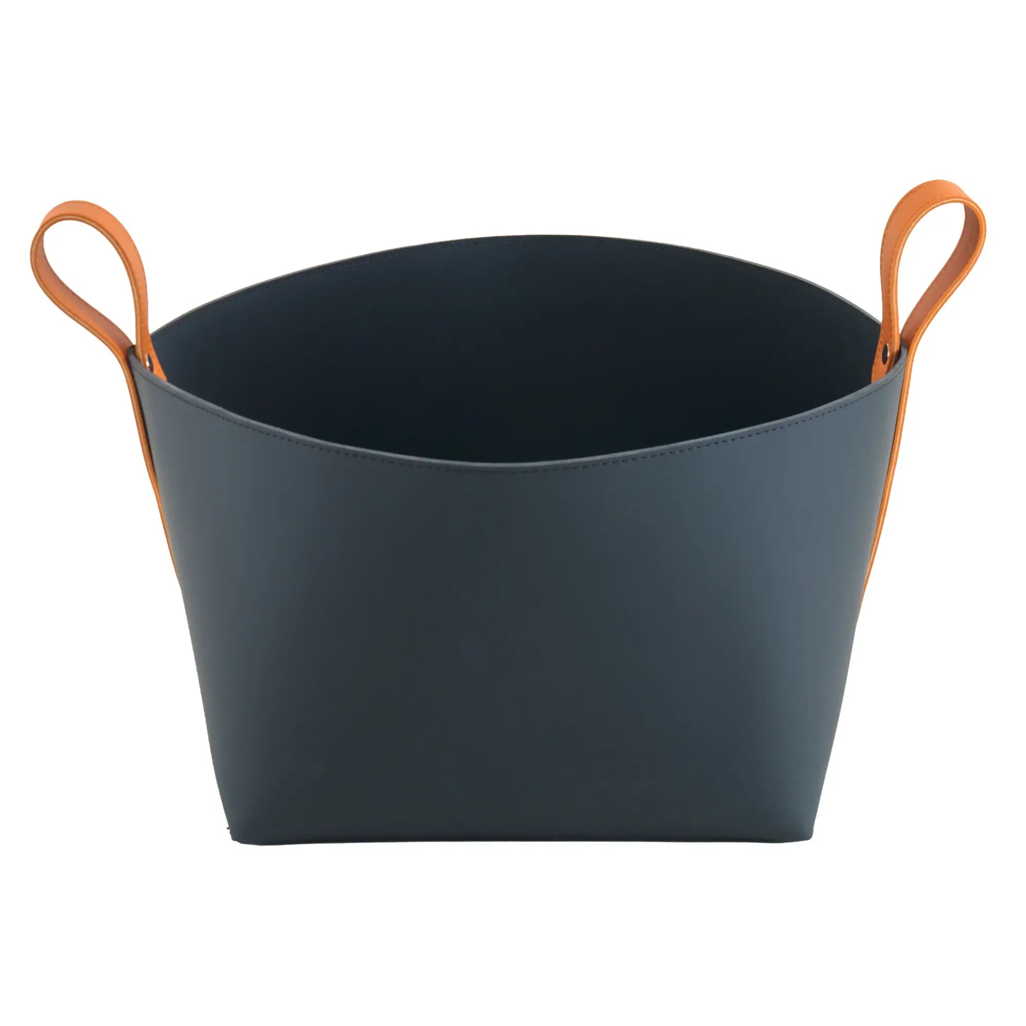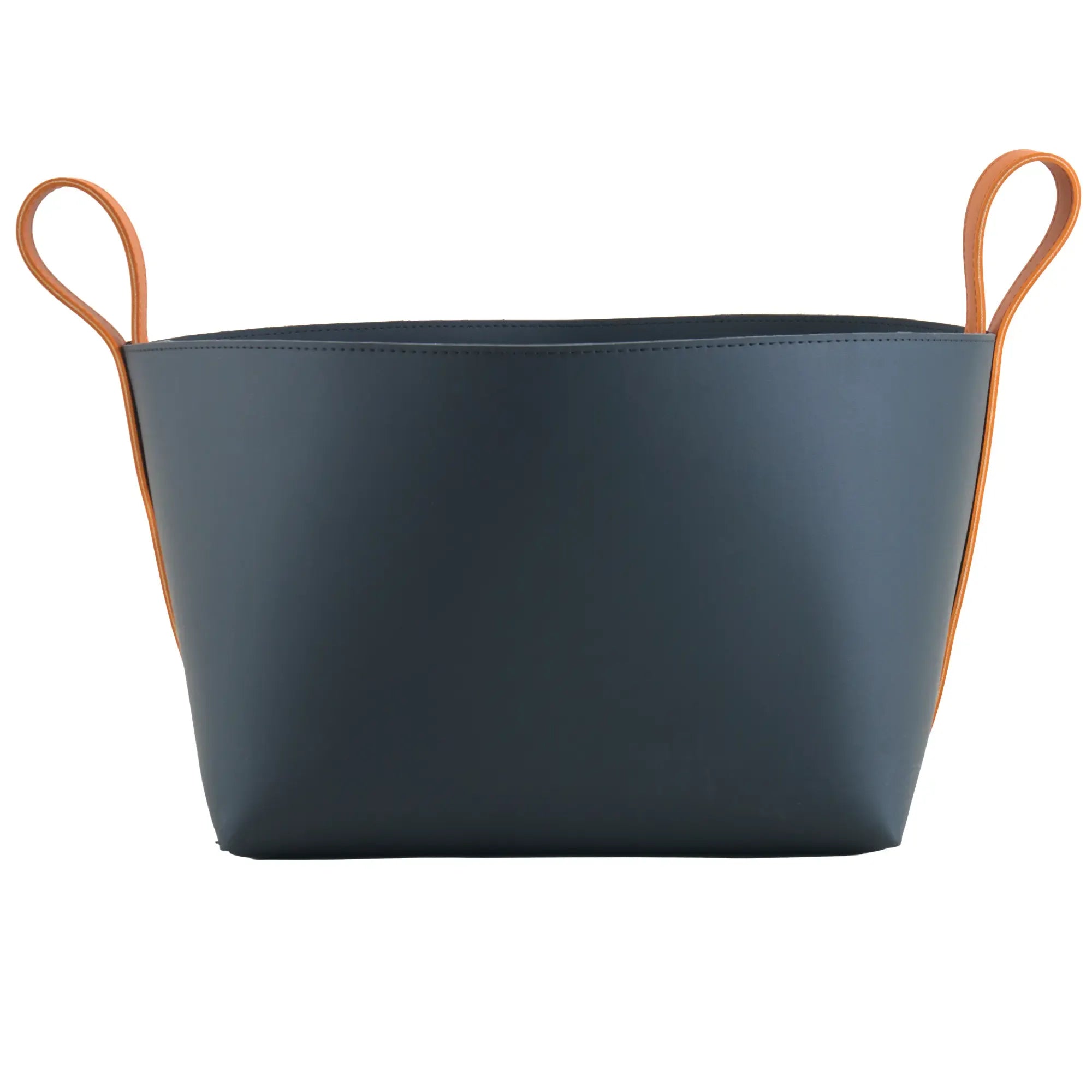 Wäschekorb - Kunstleder Lederkorb – Nachtblaues Aufbewahrungskorb mit Riemengriffen – Handgefertigtes Rundkorb Arca Kunstleder, Caramelbraun & Graphitgrau, gross und robust, im Stil: Modern, Elegant, Zeitlos
