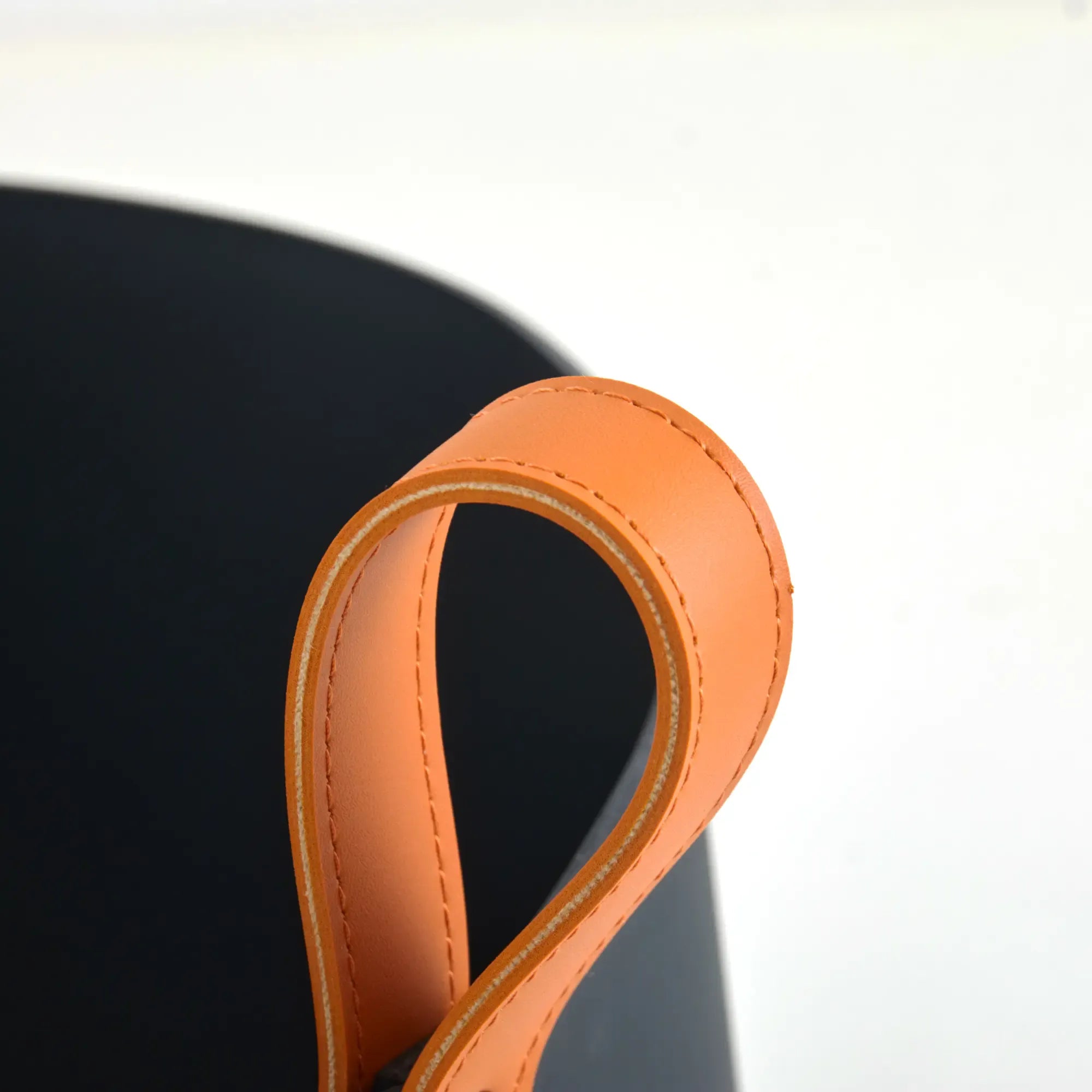 Dieser Lederkorb verbindet Objektcharakter und Funktion. Der konische Korpus aus feingenarbtem, nachtblauem Leder steht stabil auf quadratischem Grundriss; präzise Kanten, saubere Sattlernaht. Zwei cognacfarbene Riemengriffe mit sichtbaren Nieten umschließen die Form wie lineare Spangen. Die skulpturale Silhouette wirkt ruhig, modern und zeitlos; matte Oberfläche, warmer Kontrast der Ledertöne. Ein Aufbewahrungsobjekt, das als Behälter, Dekoration und Designstück gleichermaßen überzeugt – reduziert, langlebig, handwerklich klar.