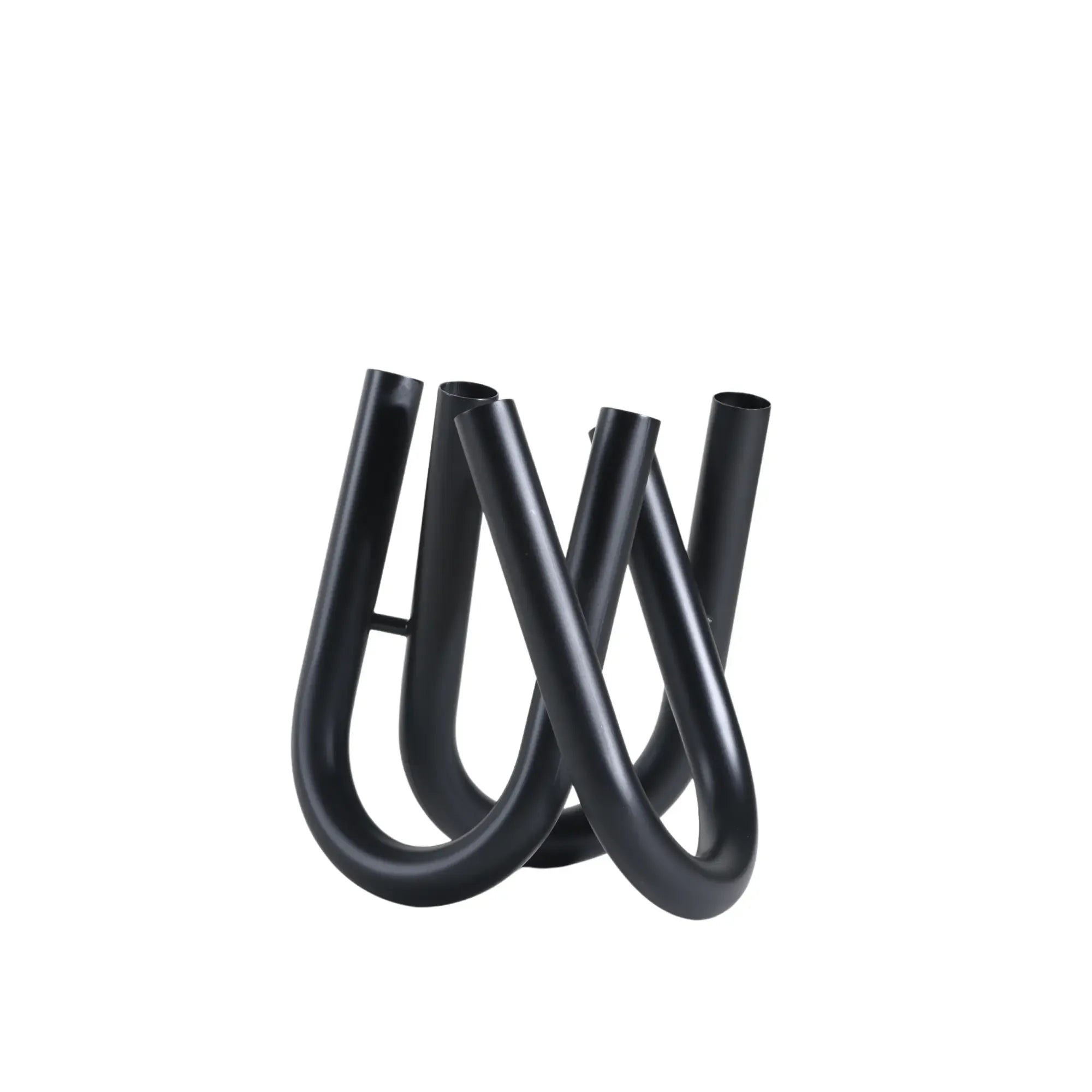 Drei elegant geschwungene, U-förmige Röhrenarme bilden eine skulpturale Vase mit sechs Öffnungen, die kreative Freiheit bei der floralen Gestaltung bieten – auch ganz ohne Blumen ein Designobjekt mit starker Präsenz.