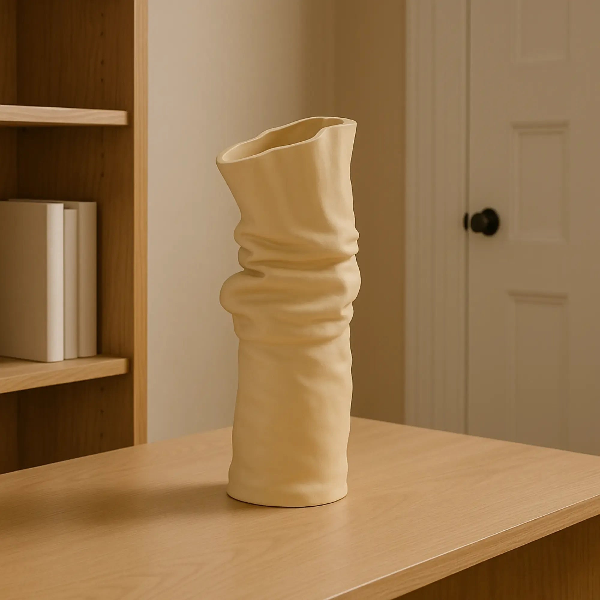 Diese exquisite, handgefertigte Keramikvase besticht durch ihr welleartiges, abstraktes Design, das sowohl künstlerisch als auch funktional ist. Die fließenden Linien und die organische Form verleihen der Vase eine elegante, moderne Note, die in jedem Raum ein Highlight setzt. Ob mit kunstvollen Trockenblumenarrangements oder frischen Blumen bestückt, sorgt sie für einen unwiderstehlichen Blickfang und verleiht Ihrem Zuhause eine besondere Note. Der edle keramische Farbton harmoniert mühelos mit verschiedenen Einrichtungskonzepten, von minimalistisch bis luxuriös, und bietet eine zeitlose Schönheit.