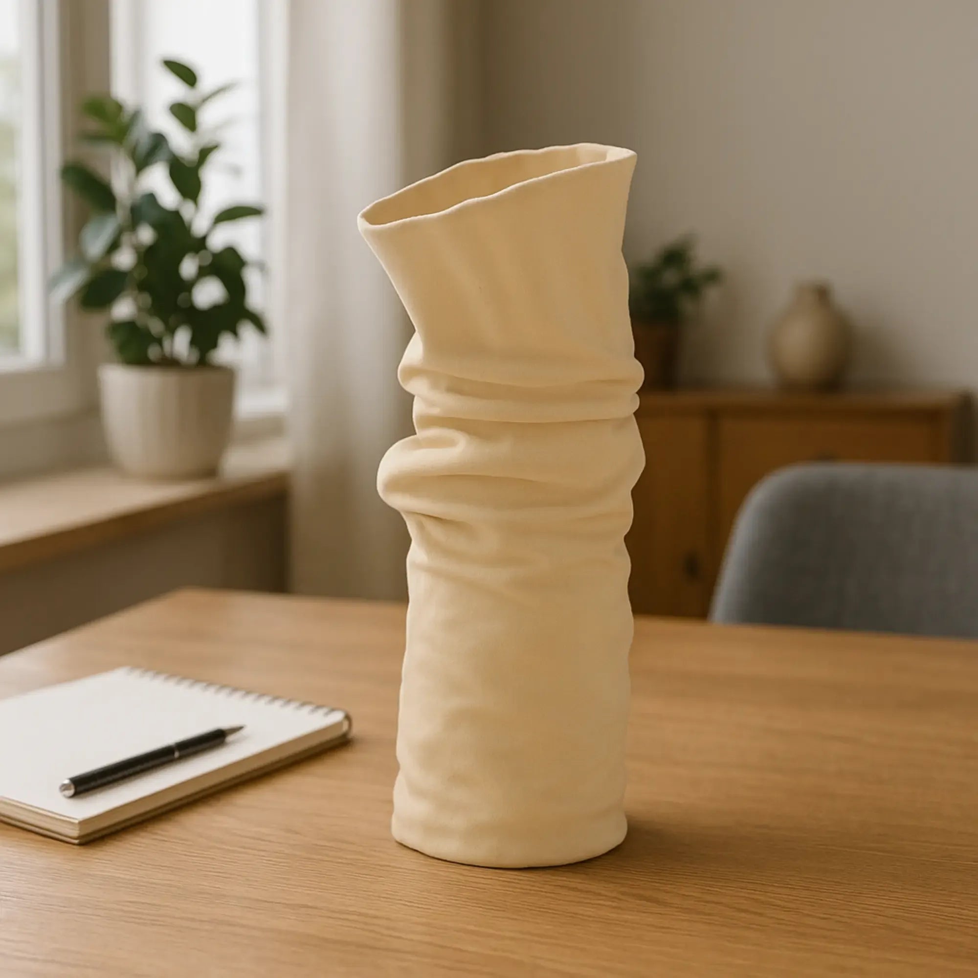 Das wellenförmige, abstrakte Design der Vase symbolisiert Bewegung und Fluss – eine moderne und dynamische Darstellung, die Eleganz und Schlichtheit vereint.