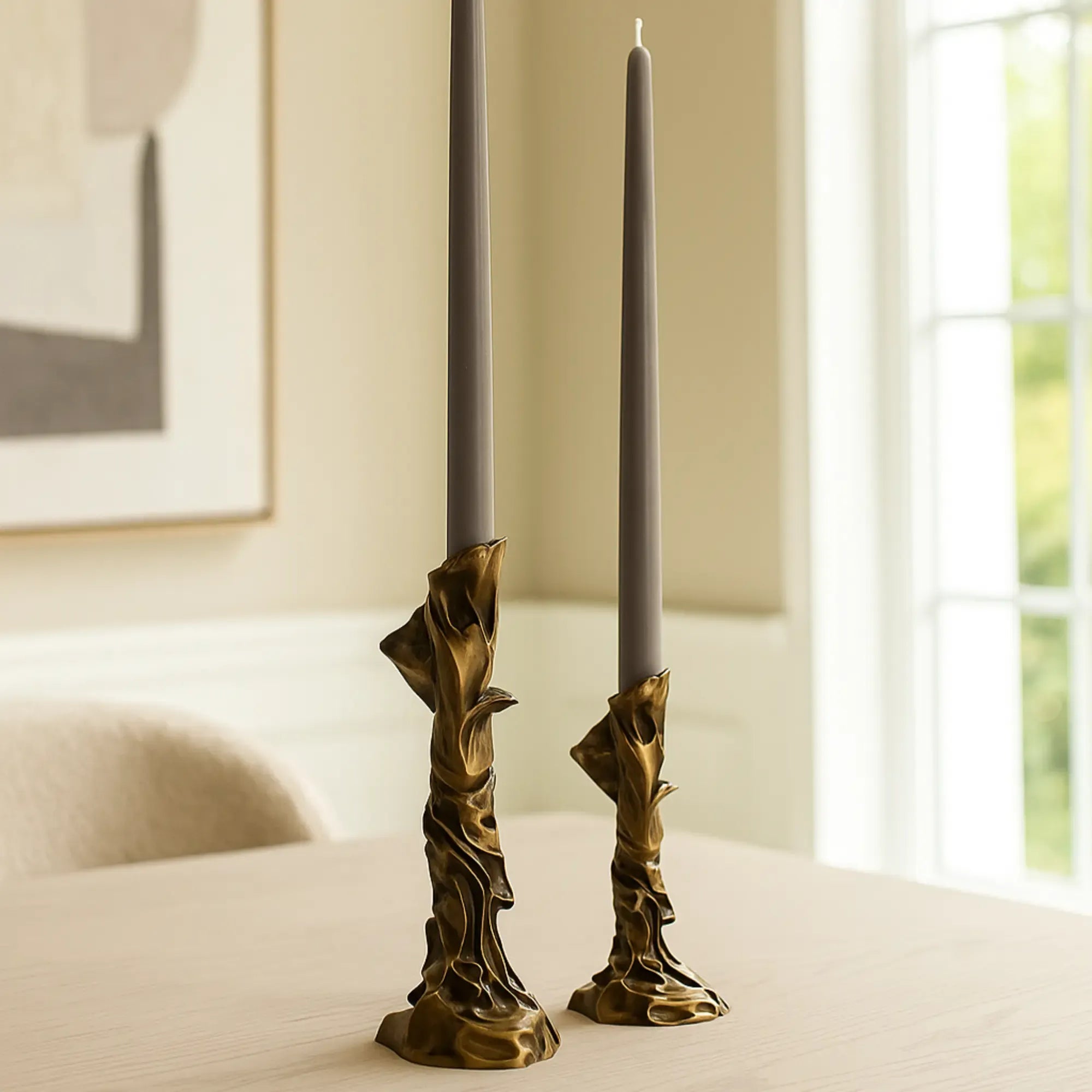 Der Kerzenständer im altgriechischen Stil verbindet klassische Ästhetik mit modernem Design. Gefertigt aus hochwertiger Zinklegierung in edlem Bronze oder Antiksilber, besticht er durch ein flammiges, kunstvoll deformiertes Design mit historischer Ausdruckskraft. Die abstrakte Form und fließenden Linien machen ihn zu einem stilvollen Blickfang in anspruchsvollen Wohnräumen. Ob mit Kerzen oder ohne, die Farbe des Kerzenständers passt sich überaus gut an, was ihn zu einem flexiblen Dekorationsobjekt macht. Als handgefertigter Zinkkerzenhalter ist er ein einzigartiges Dekorationsstück, das Eleganz und Funktionalität harmonisch vereint. Dieser Kerzenhalter aus Zinklegierung ist auch ein bemerkenswertes Geschenk für alle, die einzigartigen Stil und Qualität schätzen. Nicht nur für Zuhause, sondern auch super für Galerien, Büros und Restaurants, fügt er sich sowohl in minimalistische als auch in industrielle Umgebungen ein und wird garantiert zum Highlight jedes Raumes.