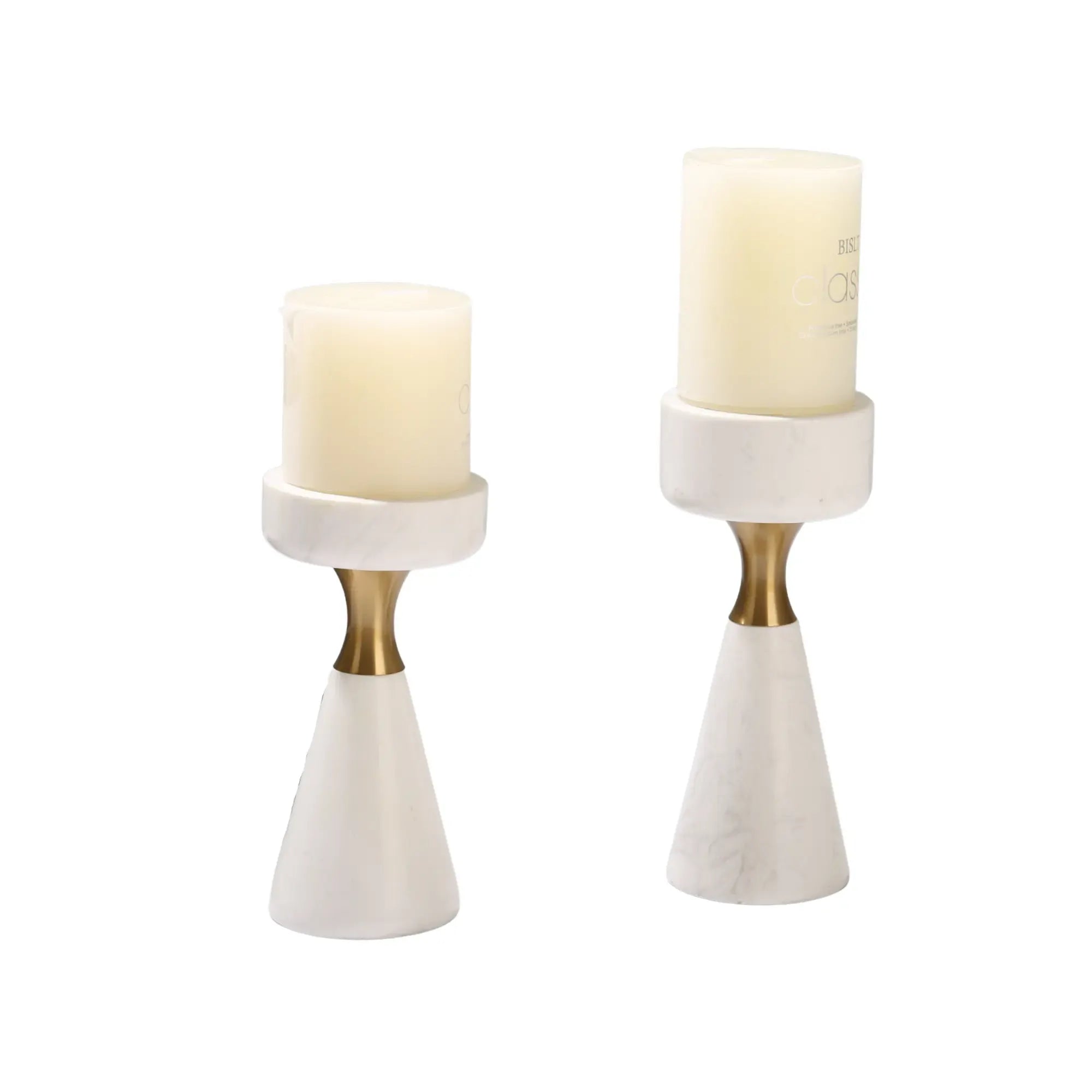 Kerzenständer - für Blockkerzen - Marmor-Kerzenhatler mit Goldakzent modern Tischdeko Lumière Aluminium & Marmor, Gold & Weiß, gross und robust, im Stil: Elegant, Modern