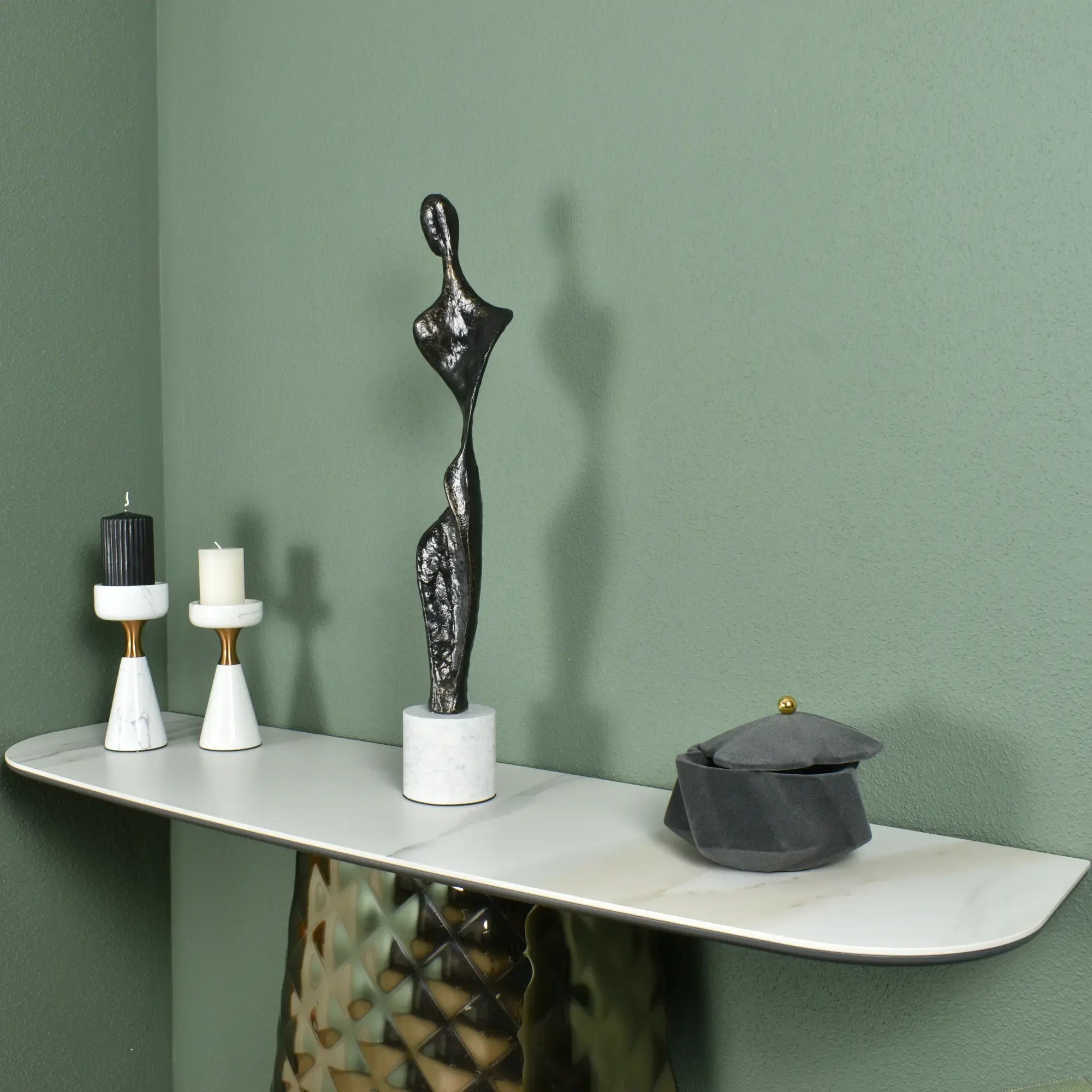 Gefertigt aus edlem weißem Naturmarmor und goldfarbenem Aluminium – für eine hochwertige Optik mit luxuriösem Charakter.