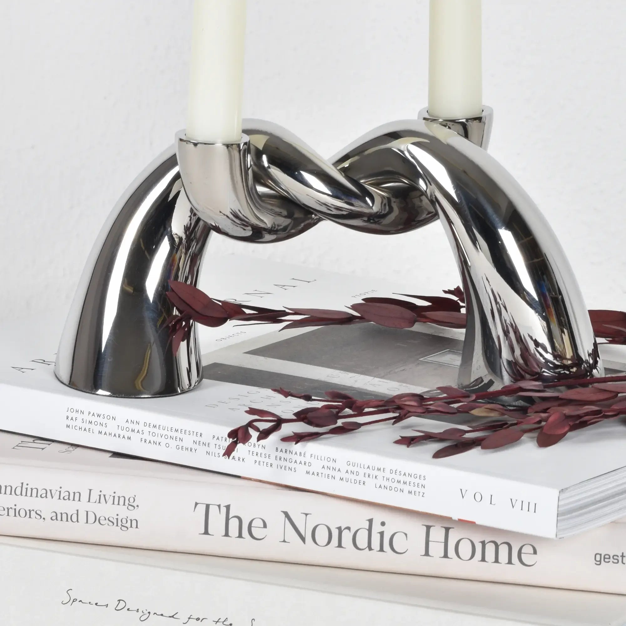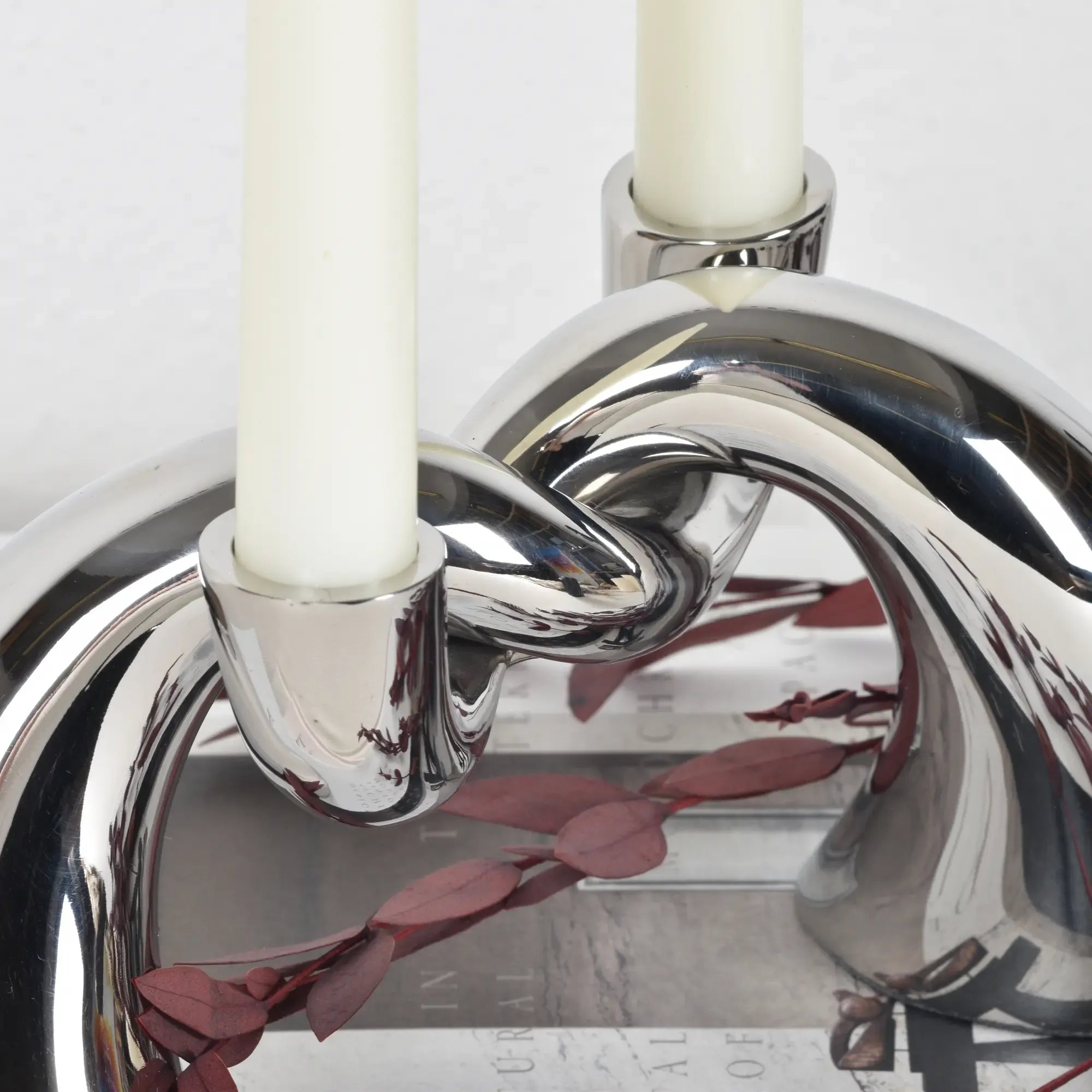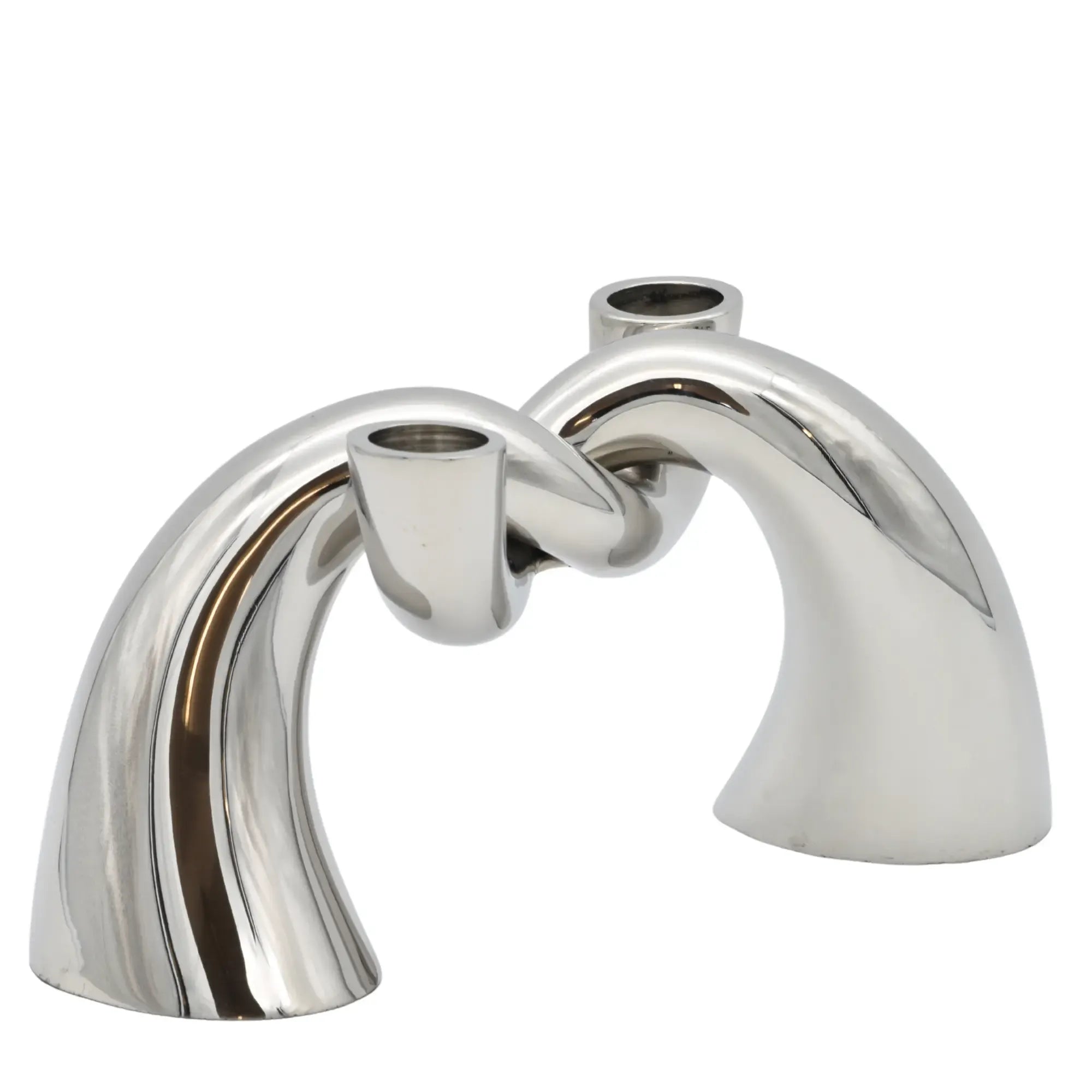 Kerzenständer - Knotendesign - Zweiarmiger Kerzenhalter Glänzender Dekokerzenständer Twist Edelstahl, Silber, gross und robust, im Stil: Elegant, Modern, Minimalistisch