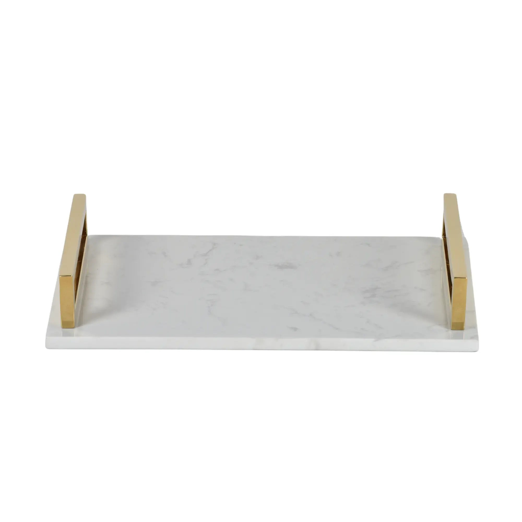 Marmortablett - mit Goldgriffen - Luxus Serviertablett Dekotablett rechteckig Aurora Luxe Edelstahl & Marmor, Gold & Weiss, gross und robust, im Stil: Elegant, Modern, Minimalistisch