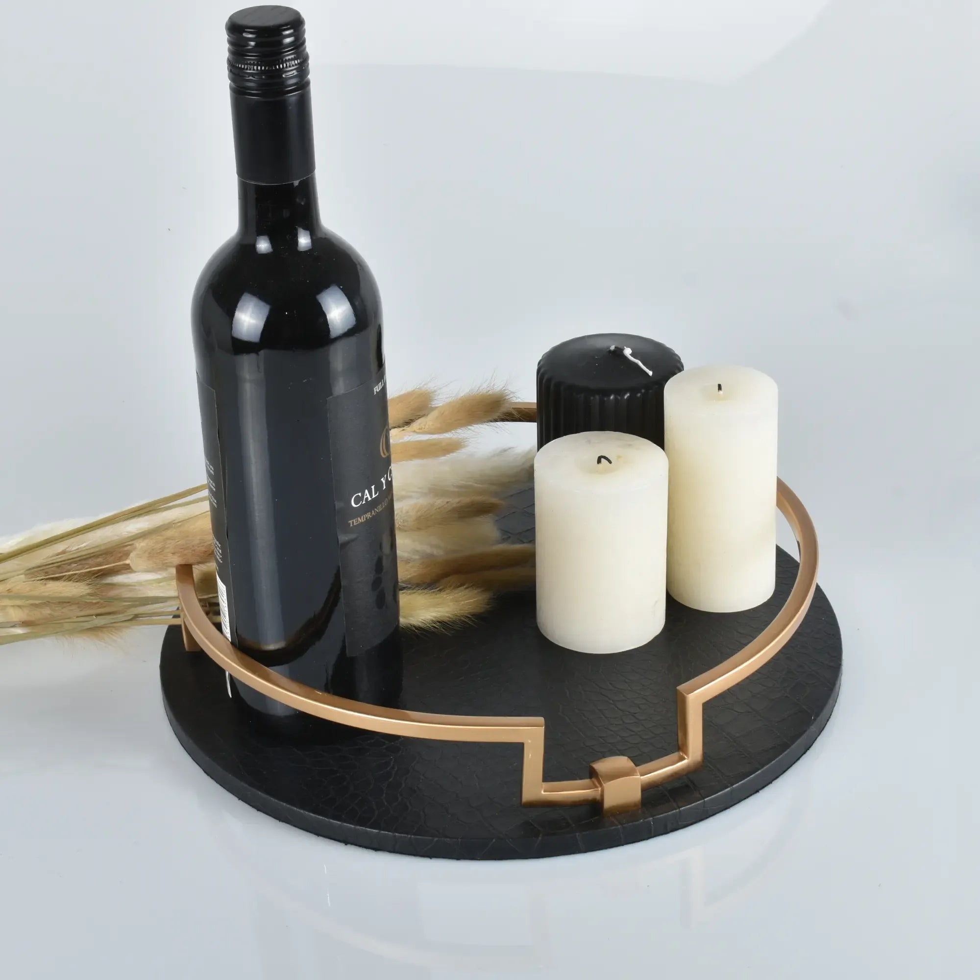 Andere Bezeichnungen und Eigenschaften: Serviertablett, Tablett, Rundtablett, Golddeko, Lederdeko, Dekotablett,