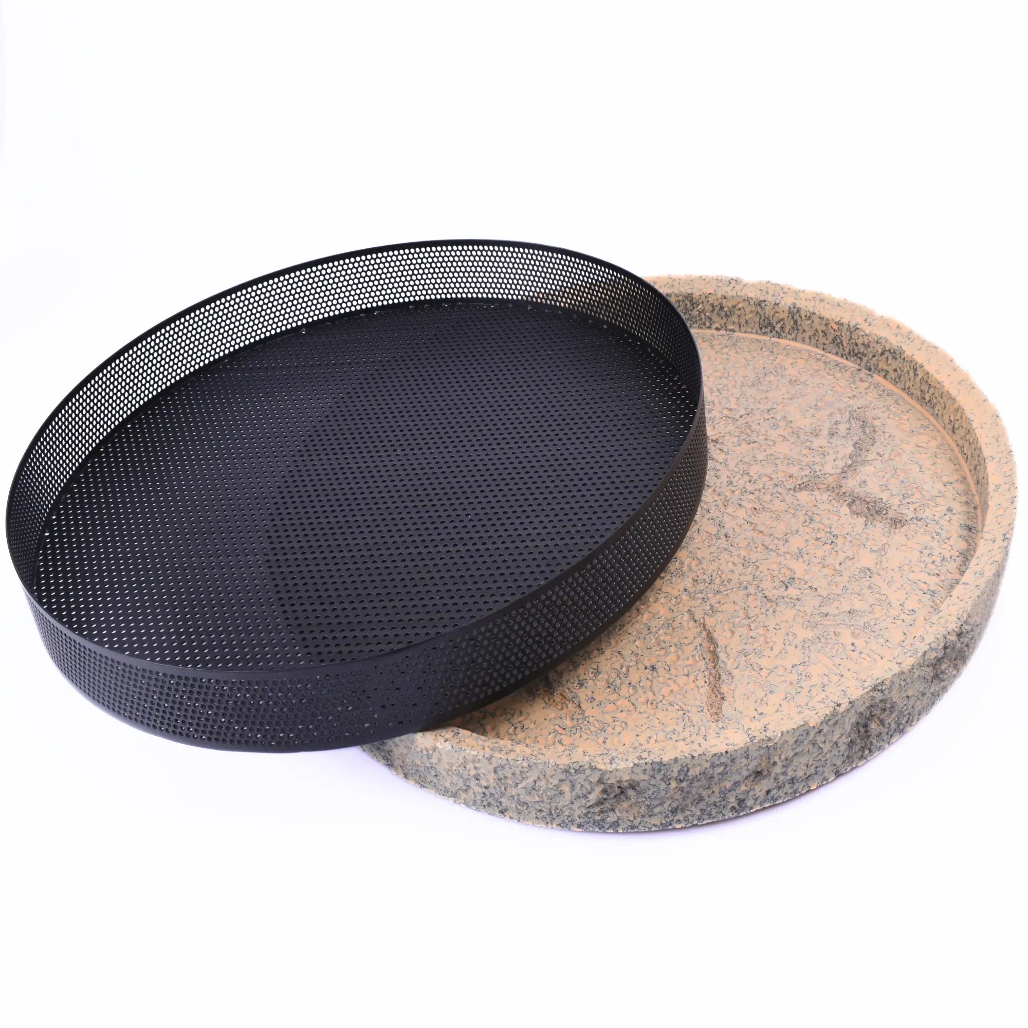 Serviertablett - rund 35cm - Kleines Dekotablett Marmoroptik Tablett Terra Mesh Aluminium & Harz, Beige & Schwarz, gross und robust, vom stil Modern & Minimalistisch & Industriell
