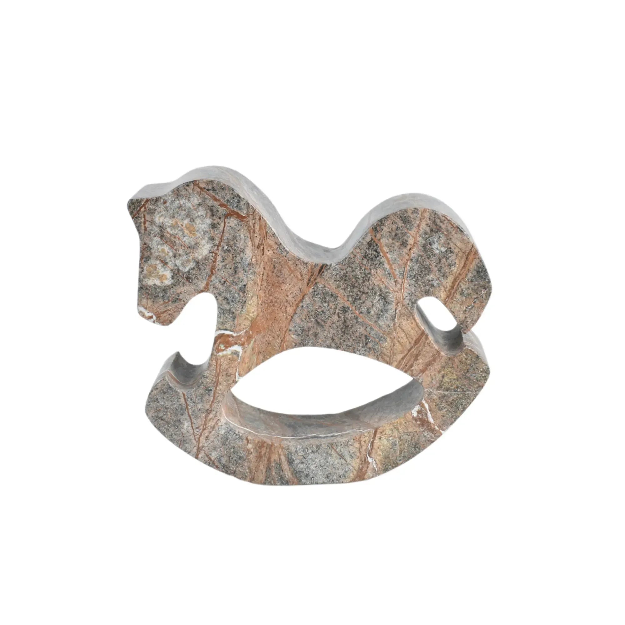Dekorative-Statue - Schaukelpferd - Pferd Marmorskulptur Deko Pferd aus Marmor Stratos Arc Marmor, Braun, und robust, im Stil: Abstrakt, Zeitlos