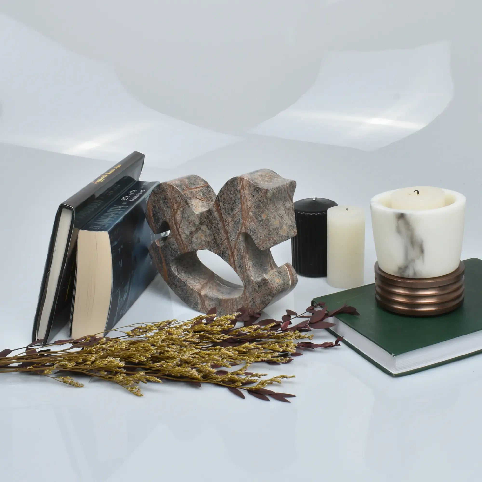 Das schwere, massive Steinmaterial garantiert festen Stand – auch als Buchstütze nutzbar oder als stabile Tischdekoration.