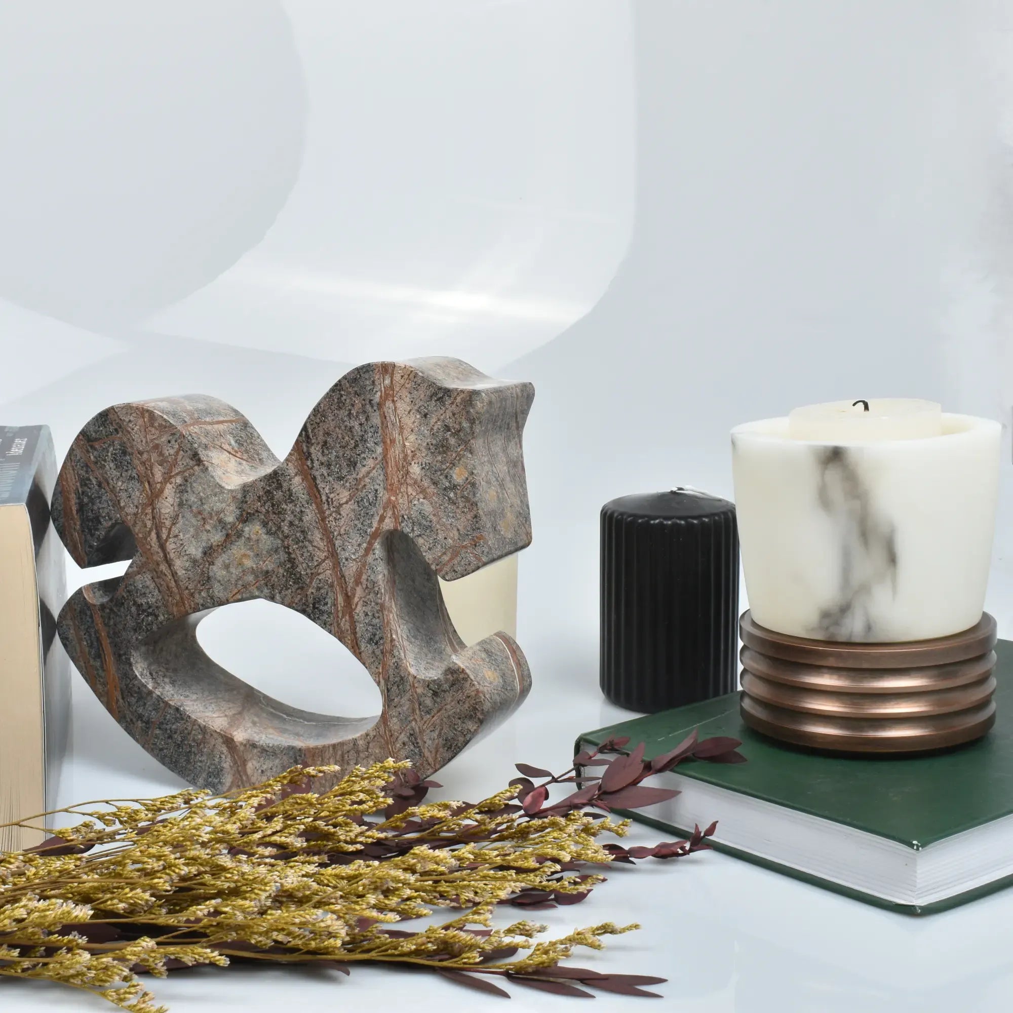 Die Stratos Arc ist eine kunstvolle Schaukelpferd-Skulptur aus massivem Naturstein-Marmor, gefertigt in liebevoller Handarbeit. Ihre geometrische Form und sanft geschwungene Silhouette symbolisieren Harmonie, Stabilität und nostalgische Kindheitserinnerung – vereint in einem edlen Designobjekt. Durch ihr besonders hohes Eigengewicht eignet sich „Stratos Arc“ nicht nur als stilvolle Tischdekoration, sondern auch hervorragend als Buchstütze oder dekorativer Akzent im Bücherregal. Sie fügt sich ideal in alle Dekoideen ein – ob im Wohnzimmer, Homeoffice oder Kinderzimmer. Ein einzigartiger Blickfang für moderne, minimalistische oder industrielle Interieurs – und ein perfektes Geschenk zur Einweihung, für Kinderzimmer, designaffine Eltern oder stilvolle Wohnzimmer.