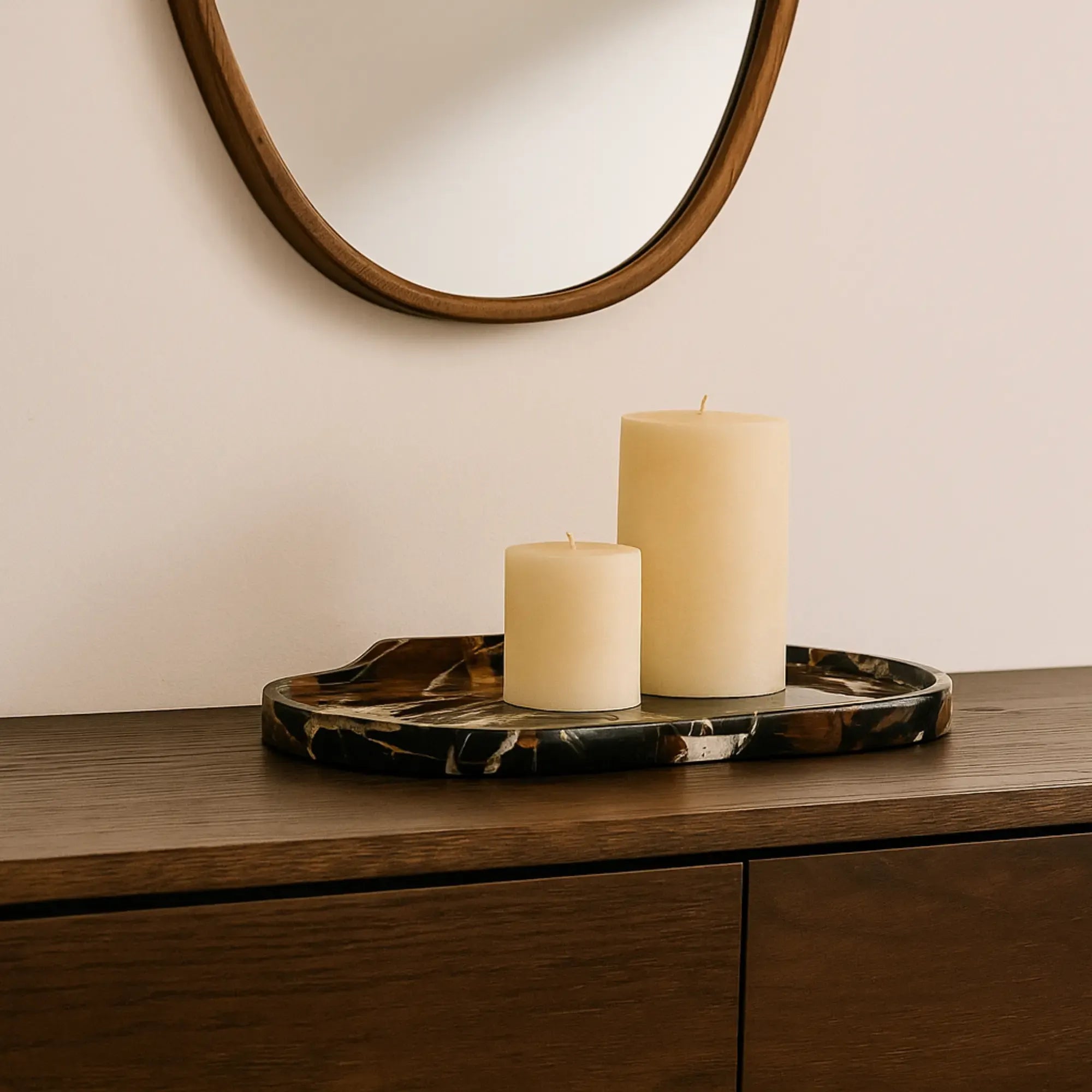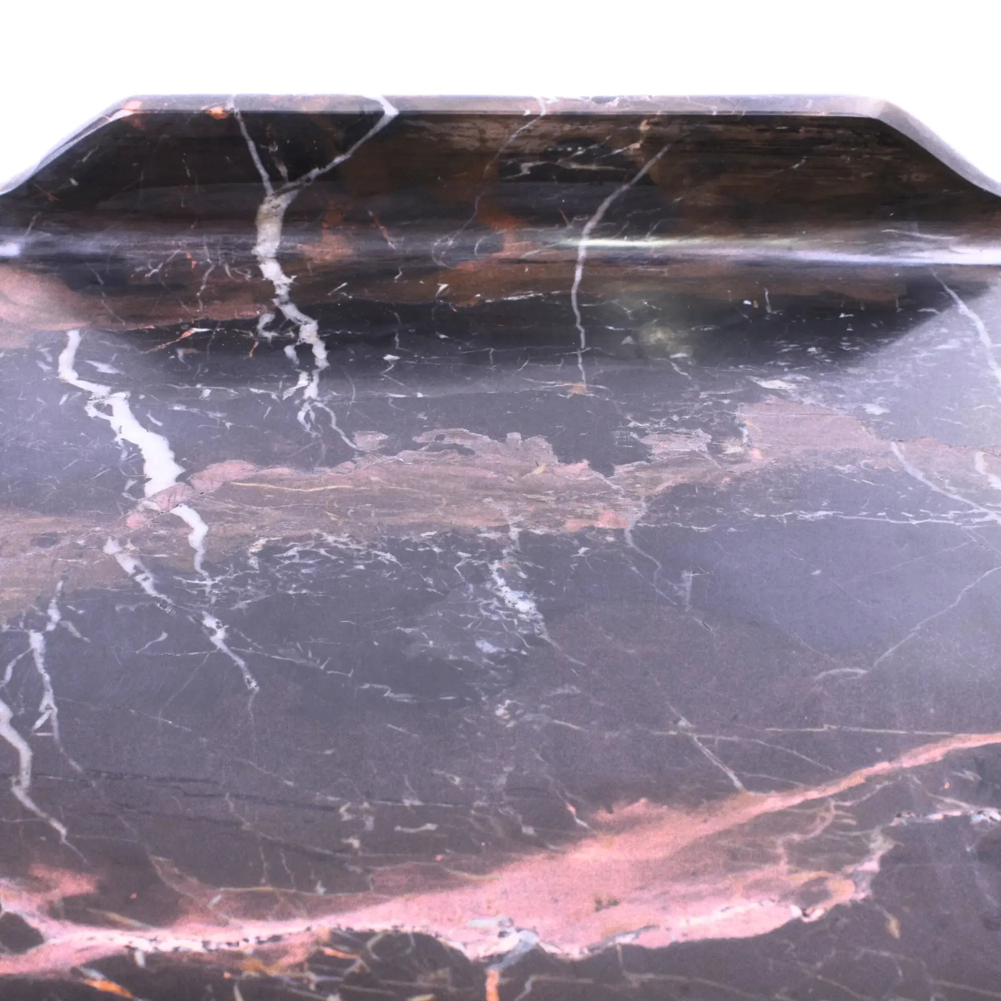 Das Ablagetablett aus dunkelbraunem Marmor vereint altrömische Eleganz mit robuster Schönheit. Markante weiße und rote Maserungen verleihen jedem Stück eine einzigartige Ausstrahlung, während die glatte, glänzende Oberfläche die luxuriöse Verarbeitung unterstreicht. Dieses marmorablage modern eignet sich perfekt für den täglichen Gebrauch oder als stilvolles Dekorationsstück und setzt edle Akzente auf Beistelltischen, Kommoden oder im Wohnbereich. Es ist perfekt als Serviertablett in der Küche für Obst oder im Wohnzimmer als Kerzenablage. Ein schweres Stück, das Natur und Handarbeit vereint. Ein zeitloser Ausdruck von Luxus und Raffinesse, ideal für anspruchsvolle Interieurs. Designideen mit Kerzen, dieses Ablagetablett eignet sich hervorragend für verschiedene Feste oder als Dekoobjekt in jedem Raum. Es passt perfekt zu marmorablage für deko oder als luxuriöses Geschenk für Designliebhaber. Ideal für Hotels, Restaurants und Empfangsbereiche, um dort eine elegante Atmosphäre zu schaffen.