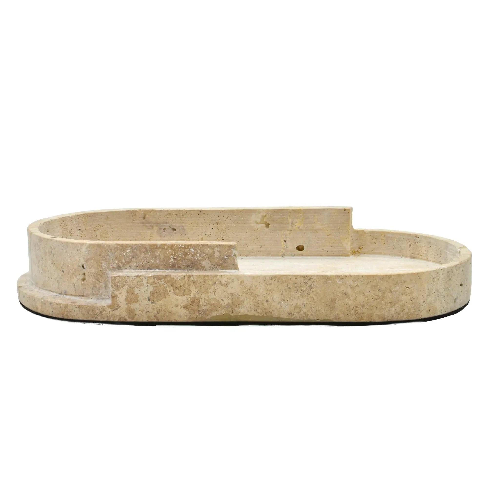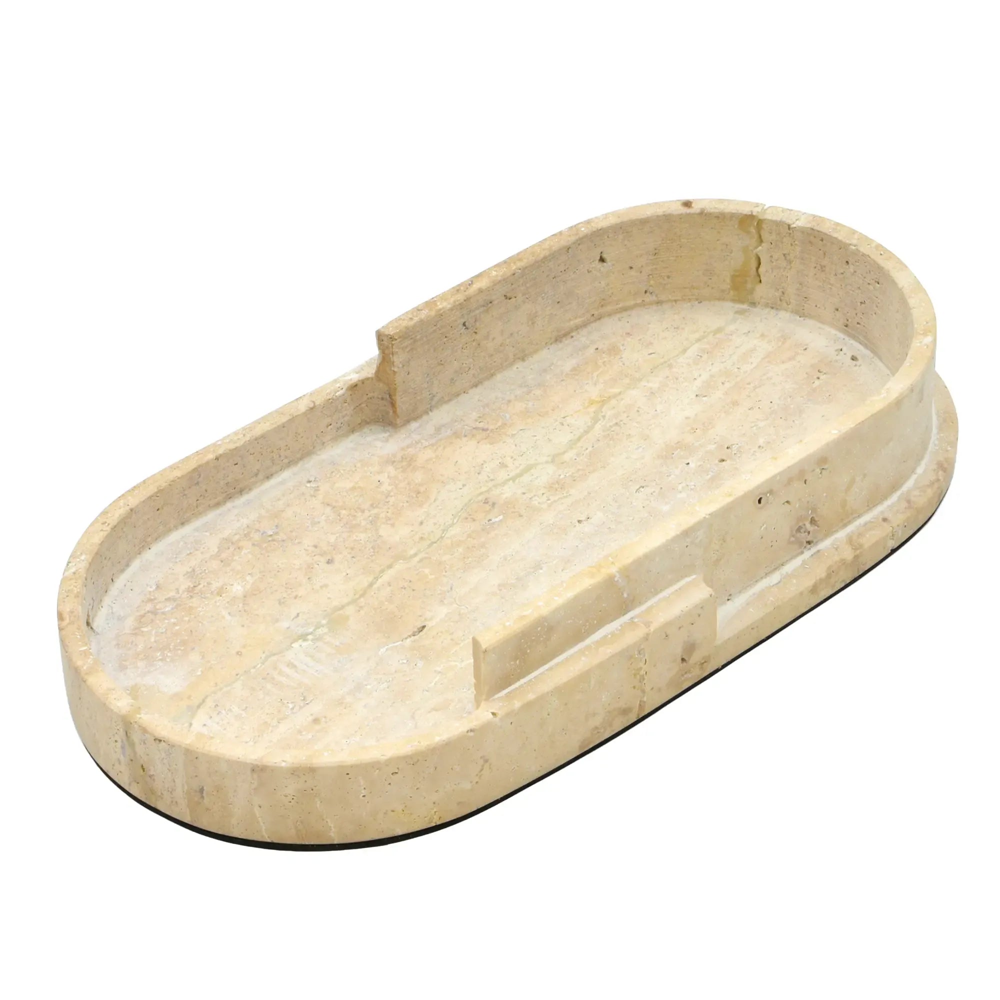 Tablett - Naturstein Аblage – Travertin Schale Servierplatte Arcus Travertin, Beige, gross und robust, im Stil: Antik, Zeitlos, Elegant