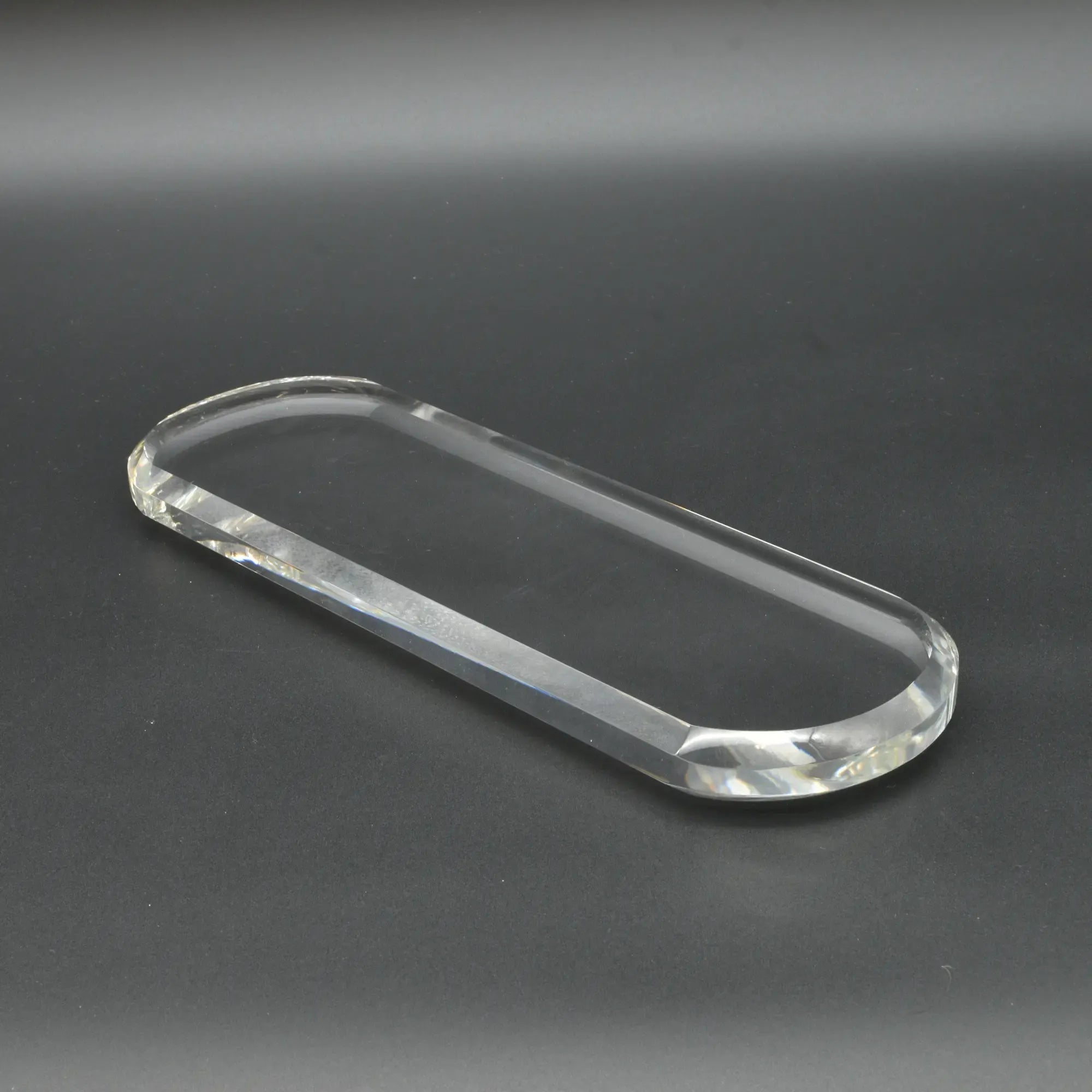 Reduziert, modern, vielseitig. Diese schlanke Ablageplatte setzt mit ihrer sanft gerundeten Kapsel-Form einen ruhigen, architektonischen Akzent in jedem Interieur. Die fließende Silhouette wirkt leicht und klar, zugleich bietet die großzügige Fläche sicheren Halt für Accessoires, Kerzen-Arrangements, Parfums, Schmuck oder kleine Köstlichkeiten.