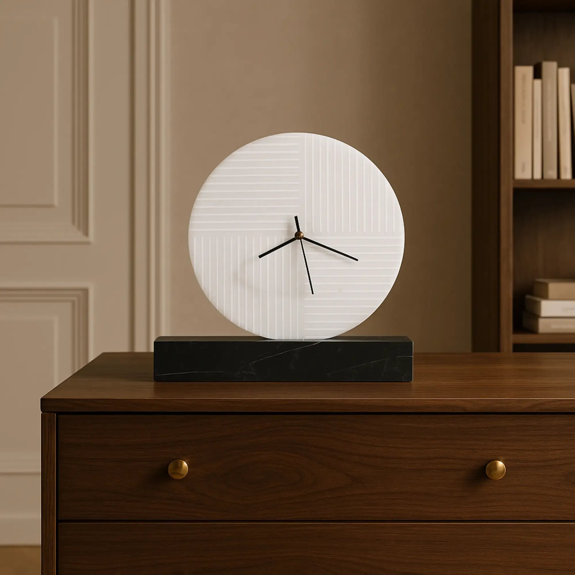 Andere Bezeichnungen und Eigenschaften: Tischuhr, Uhr, Marmordeko, Wohnzimmer, Homeoffice, Eingang, Kommode, Bücherregal