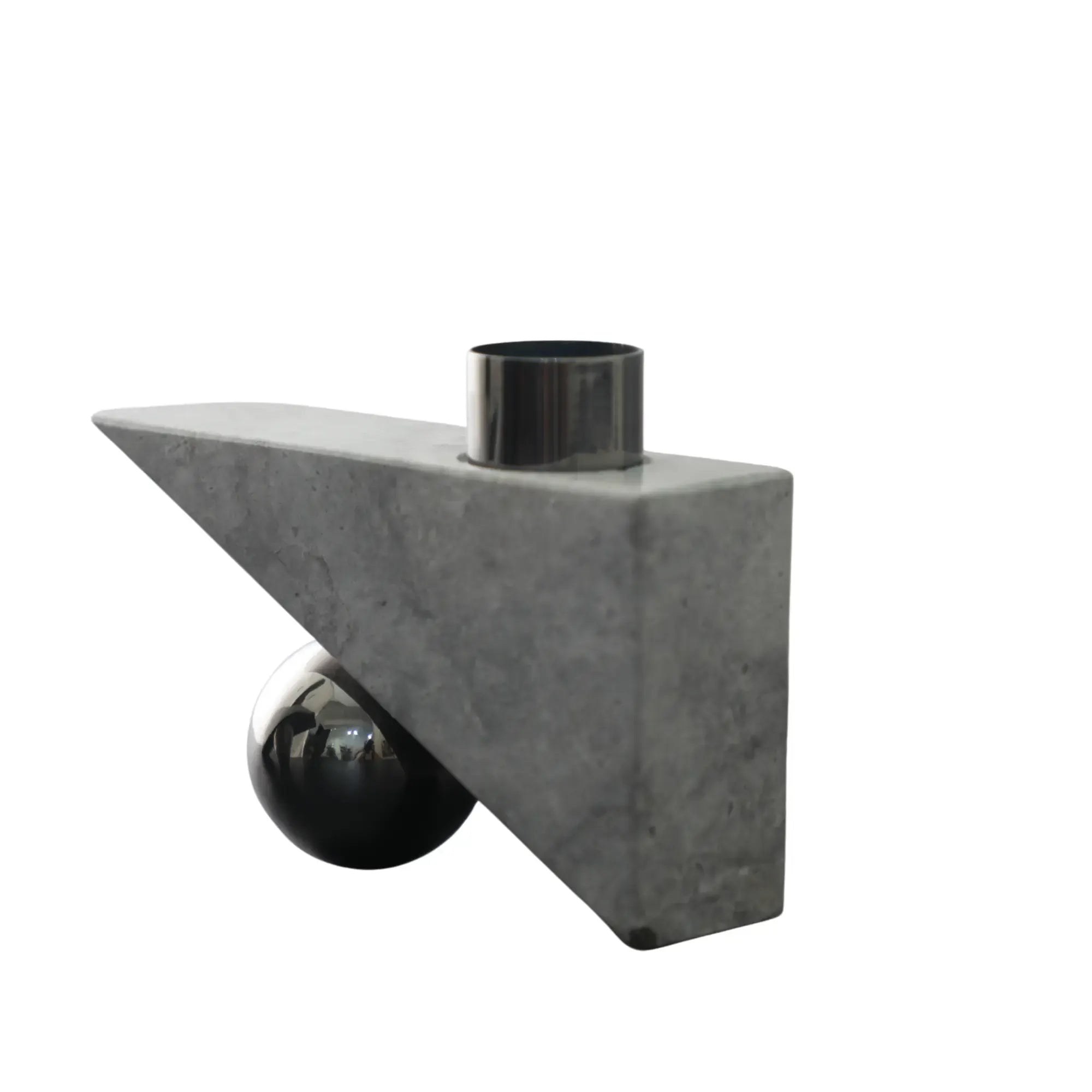 Die Zenith Sculpt ist eine moderne Designvase, die geometrische Präzision mit luxuriösen Materialien kombiniert. Das kantige Gestell aus grauem Naturstein verleiht der Vase eine architektonische Anmutung, während der zylindrische Edelstahlaufsatz einen eleganten, industriellen Touch beisteuert. Ob für Trockenblumen-Arrangements, kleine frische Sträuße oder einzelne Blüten – die Zenith Sculpt ist vielseitig einsetzbar und passt zu allen Dekorationsideen, ob auf dem Sideboard, im Bücherregal oder als stilvoller Akzent auf dem Esstisch. Diese handgefertigte Vase überzeugt durch ihre hochwertige Verarbeitung und bringt moderne Kunst in funktionale Form. Ihr stabiler Aufbau und das edle Zusammenspiel aus Stein und Metall machen sie zu einem bleibenden Highlight in Wohn- oder Arbeitsräumen, Lofts, Praxen oder Showrooms. Ein hochwertiges Geschenk zur Einweihung oder für Designliebhaber:innen – minimalistisch, kraftvoll und zeitlos.