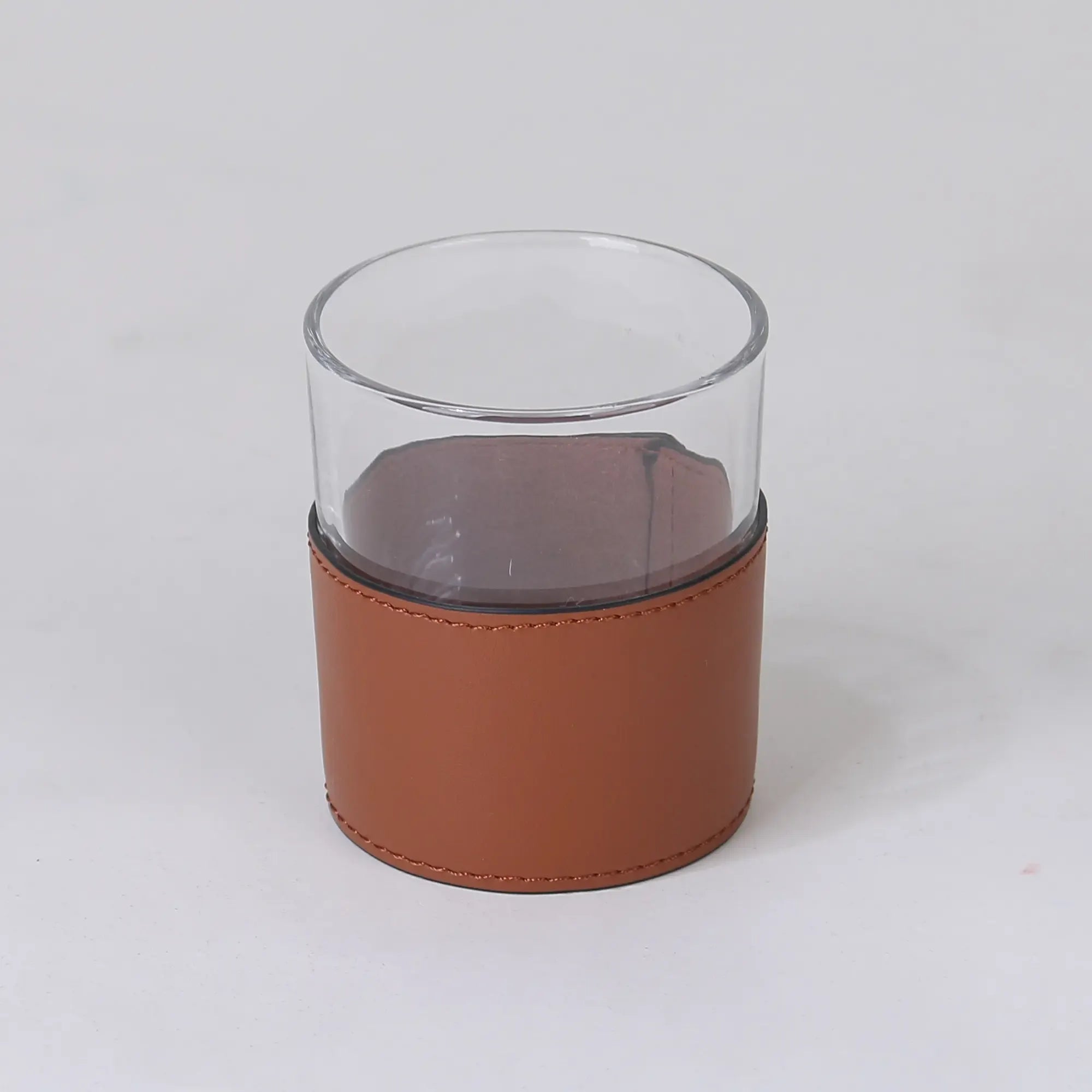 Hochwertiges Glas kombiniert mit braunem, grauem oder cognac Kunstleder für einen luxuriösen Look – die Kombination aus Transparenz und feiner Textur schafft ein stilvolles Designobjekt für Bar, Küche oder Office.